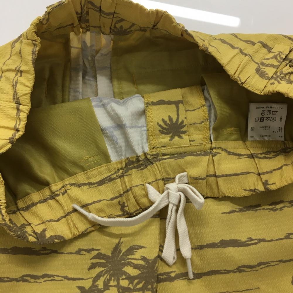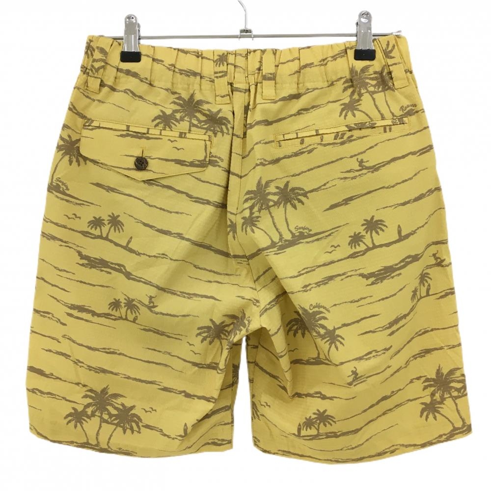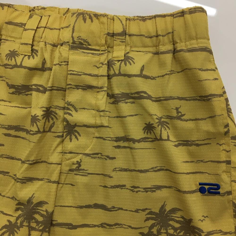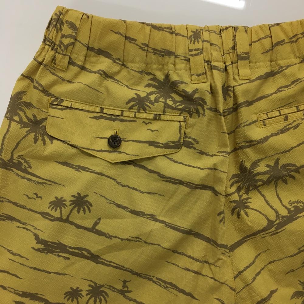 【超美品】ロサーセン ハーフパンツ イエロー×ダークブラウン ヤシの木柄 サーフィン サッカー生地 メンズ 82 ゴルフウェア Rosasen