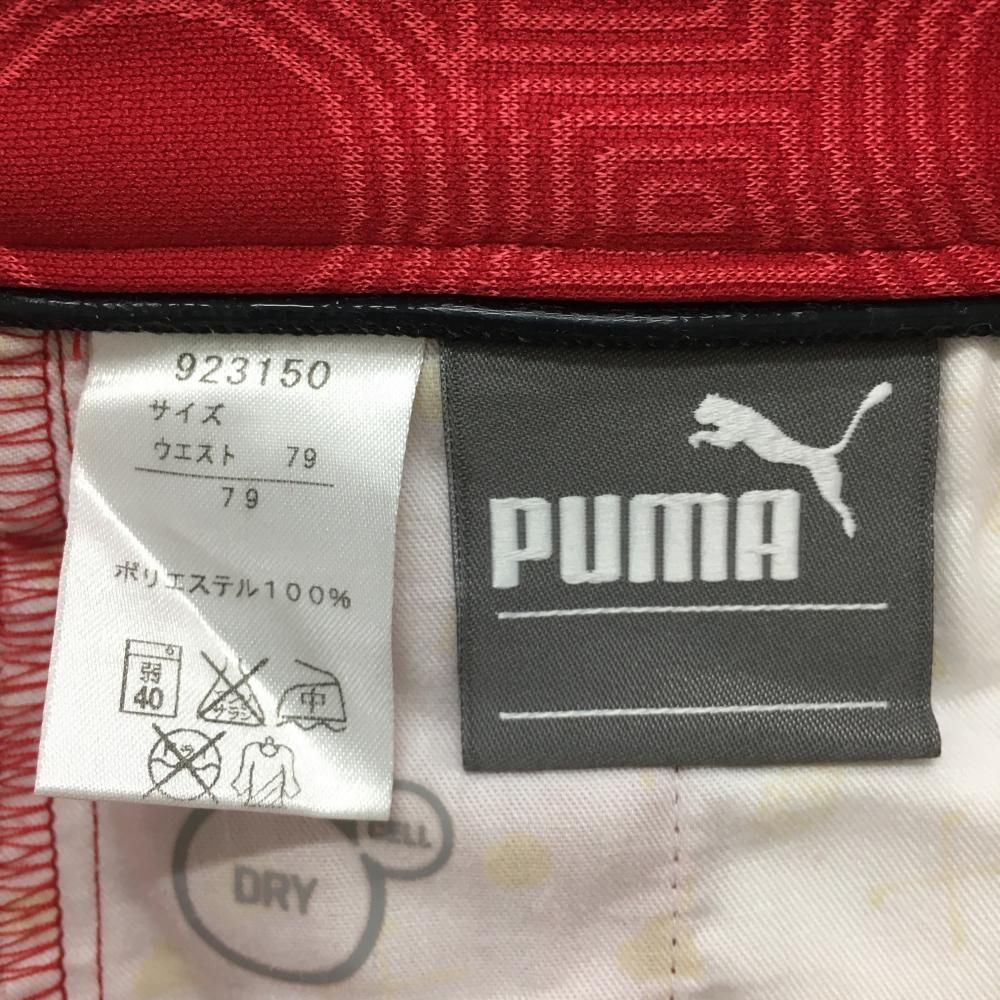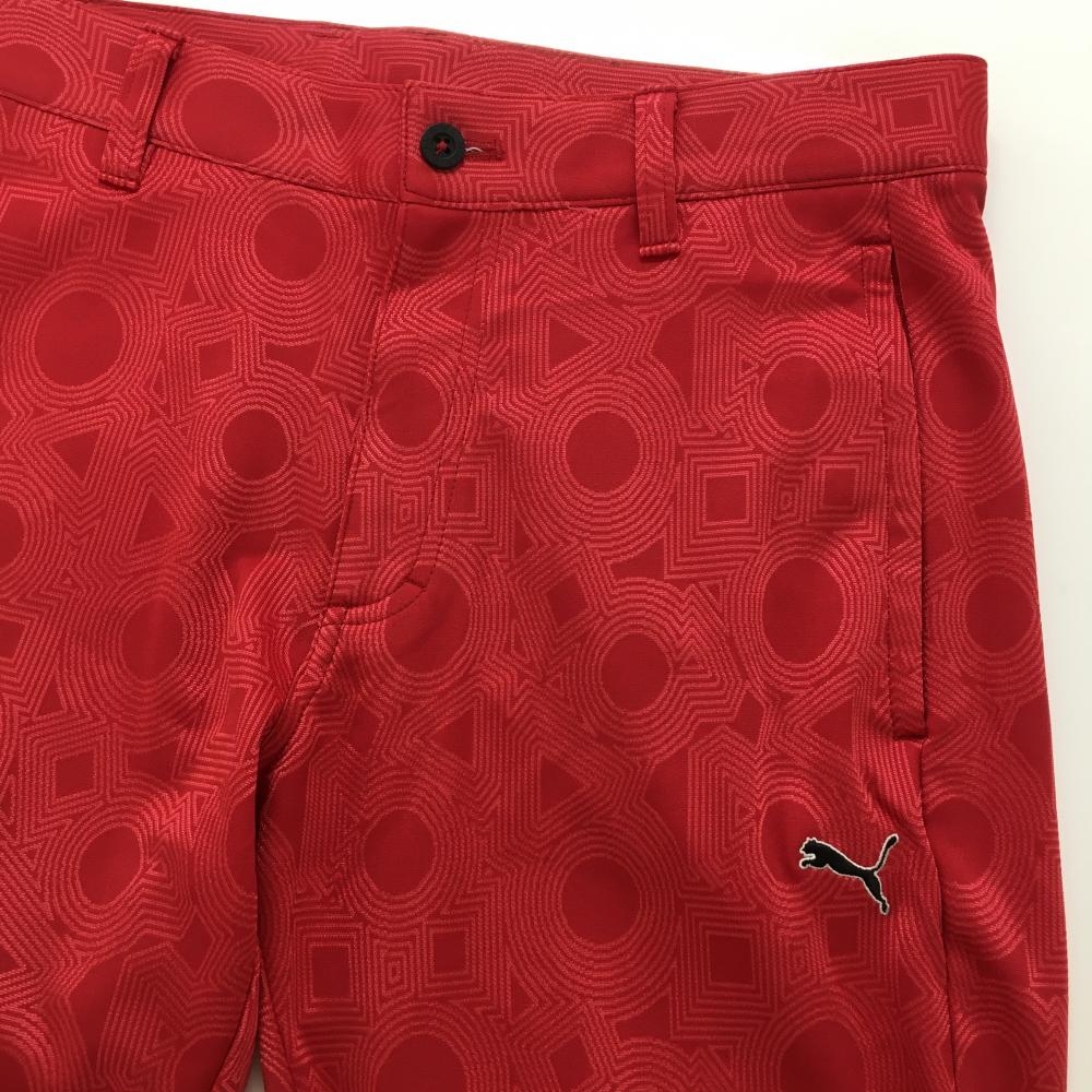 【超美品】プーマ パンツ レッド 総柄地模様 ロゴ黒 メンズ 79 ゴルフウェア PUMA