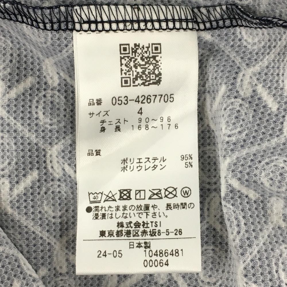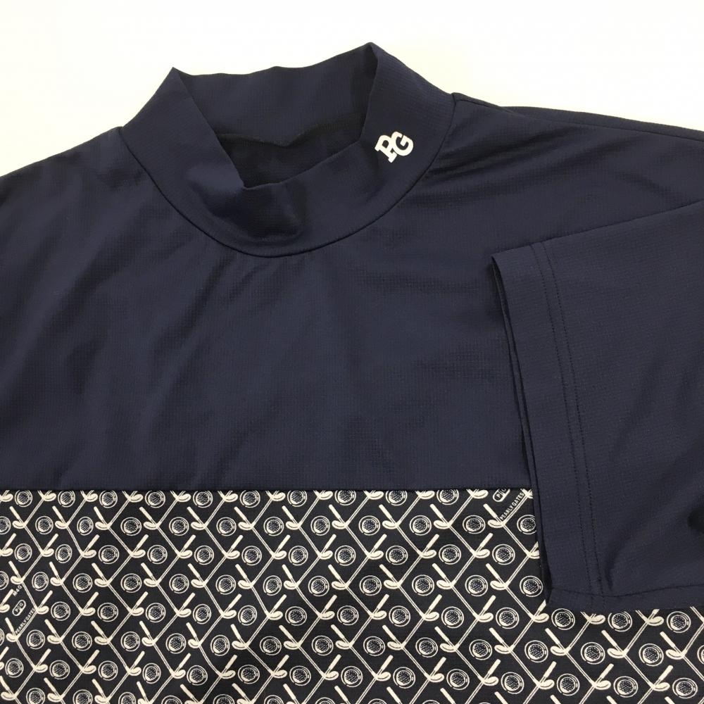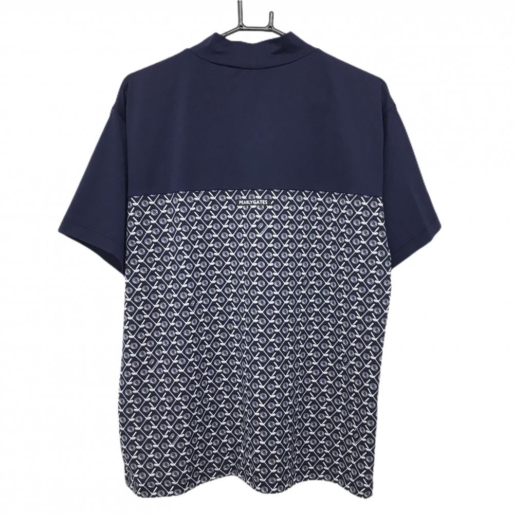 【超美品】パーリーゲイツ 半袖ハイネックシャツ ネイビー×白 胸下総柄 ストレッチ メンズ 4(M) ゴルフウェア 2024年モデル PEARLY GATES