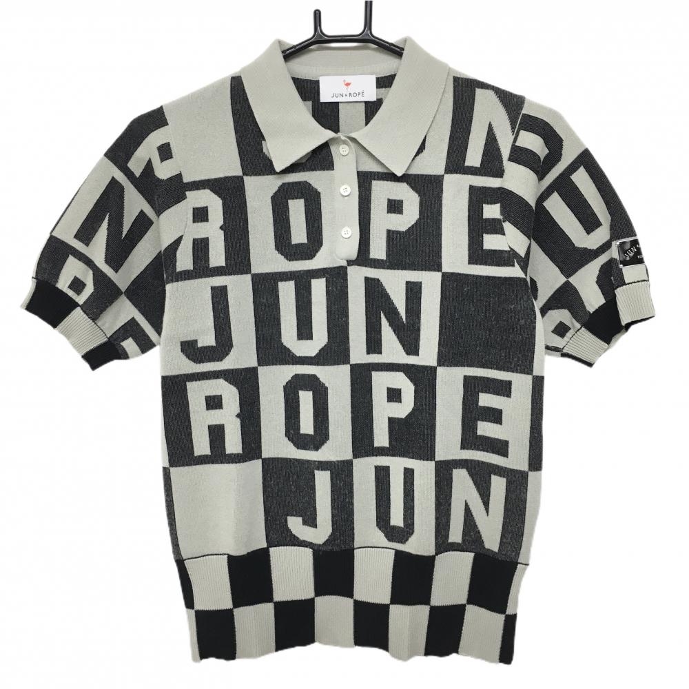 【超美品】ジュンアンドロペ 半袖ポロセーター ベージュ×ダークグレー レディース M ゴルフウェア 2025年モデル JUN&ROPE