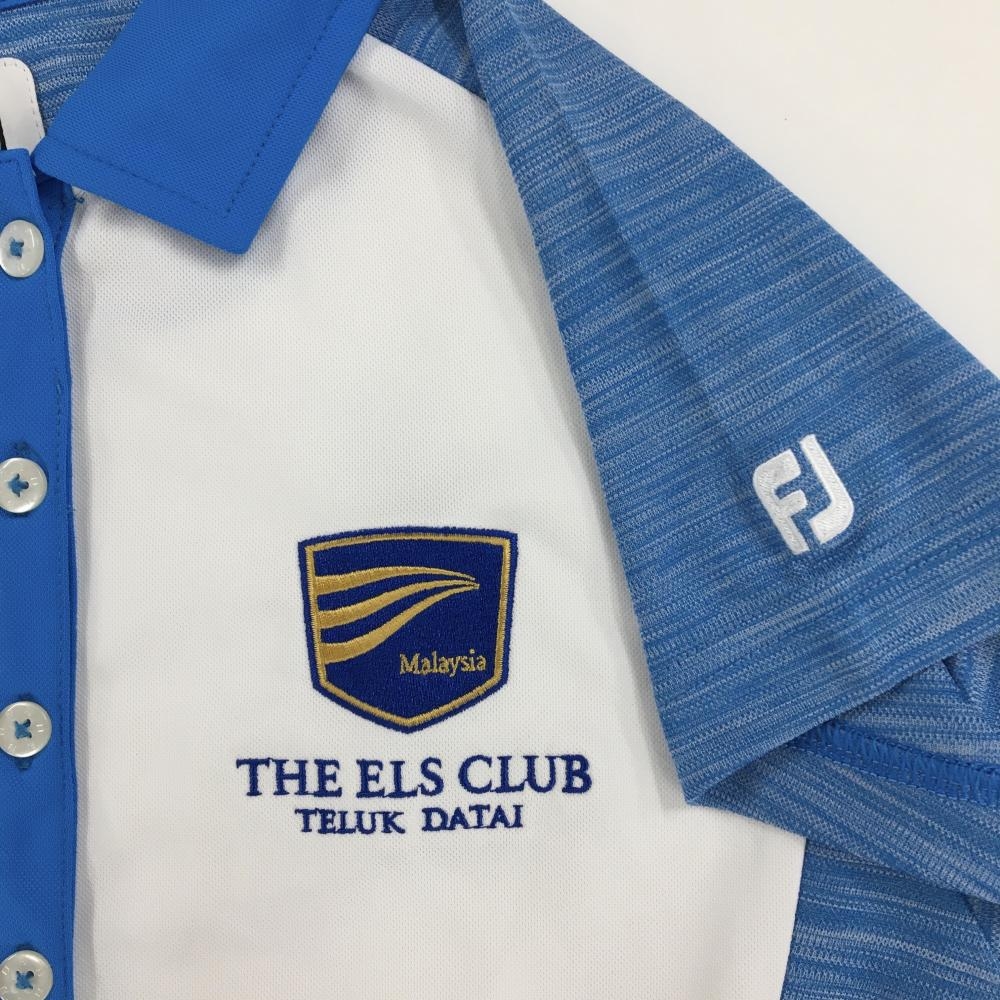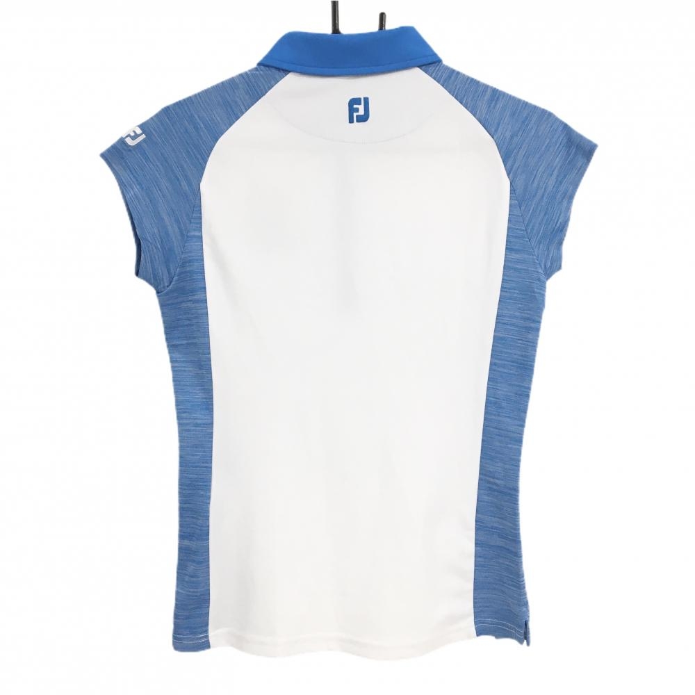【美品】フットジョイ 半袖ポロシャツ ライトブルー×白 バイカラー レディース S ゴルフウェア FootJoy