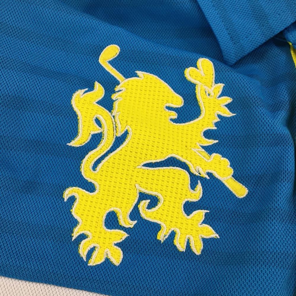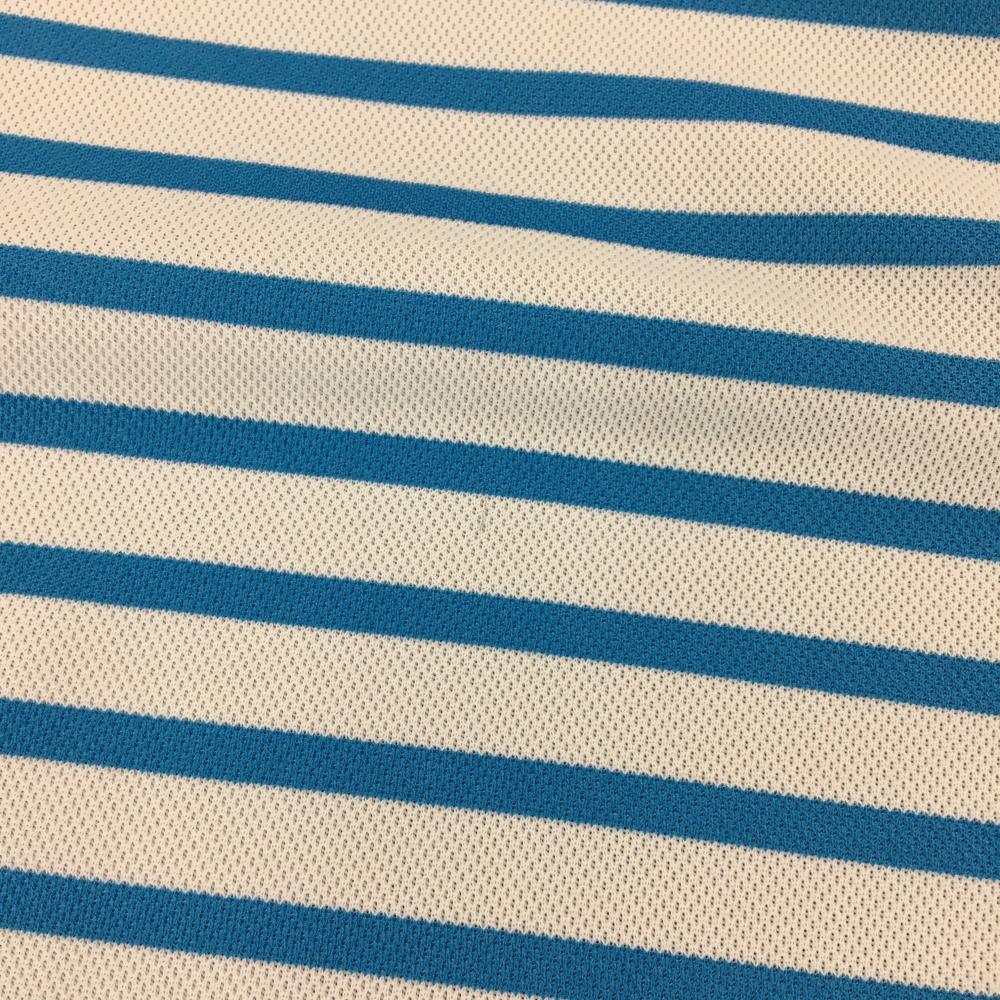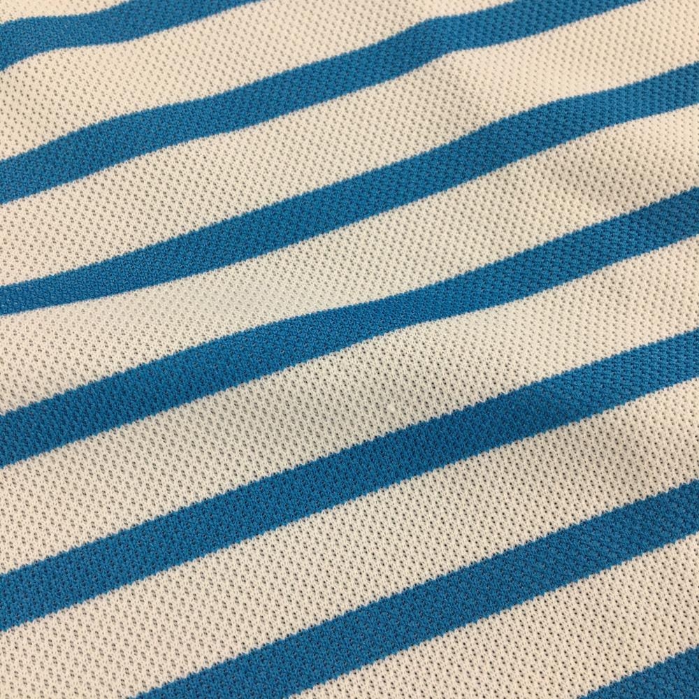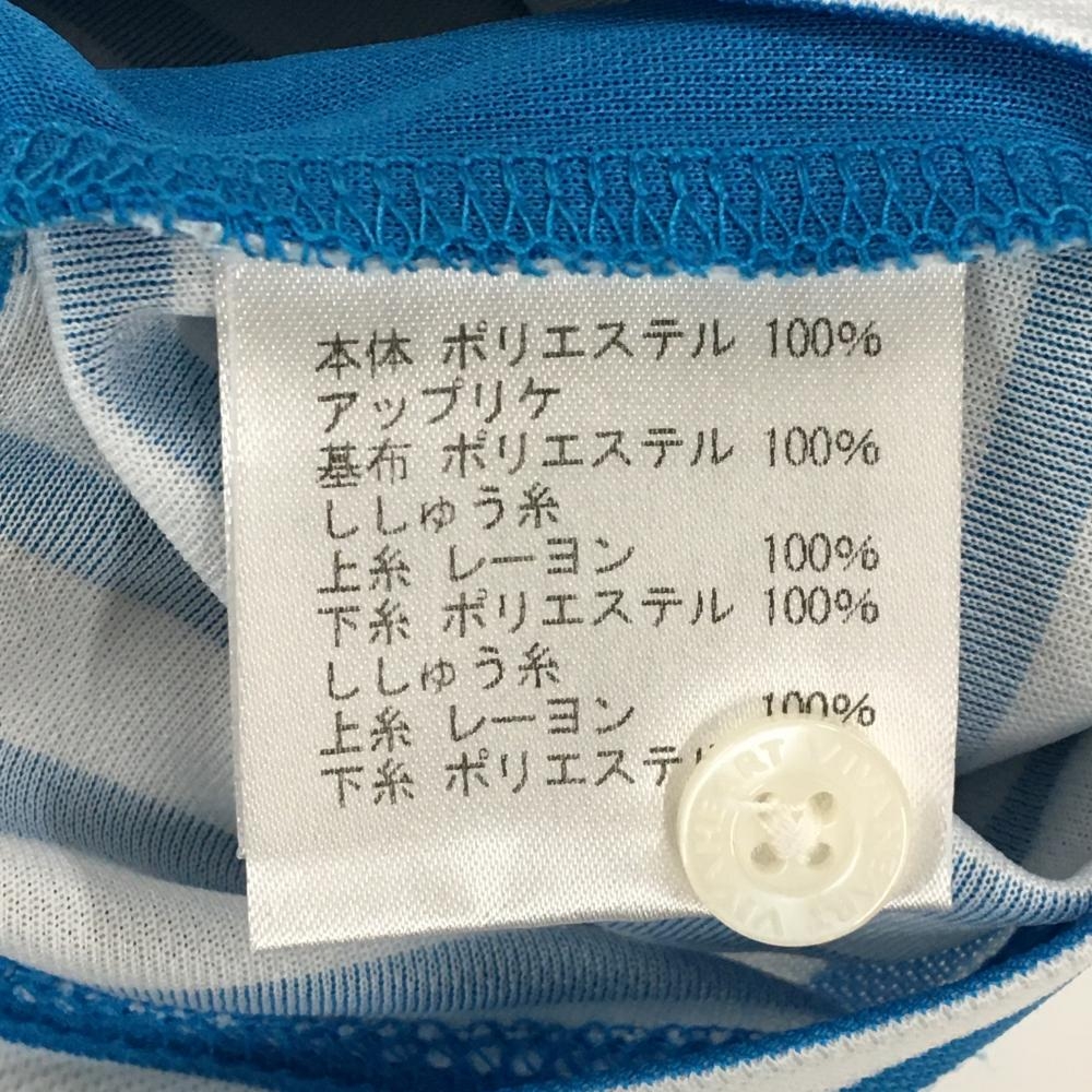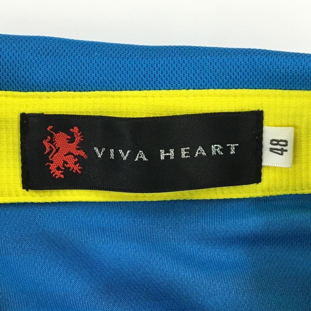【美品】ビバハート 半袖ポロシャツ ライトブルー×白 ボーダー 胸元ロゴ メンズ 48(M) ゴルフウェア VIVA HEART