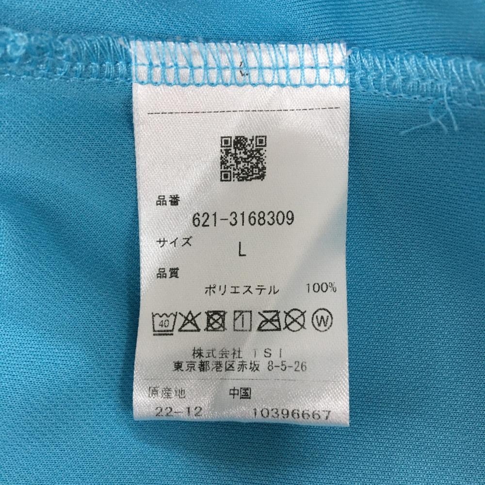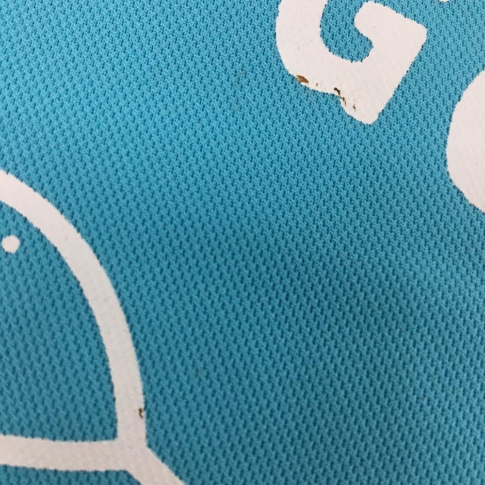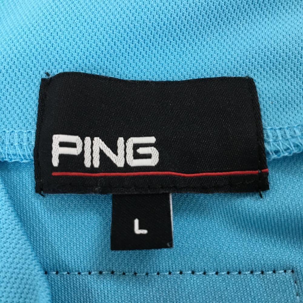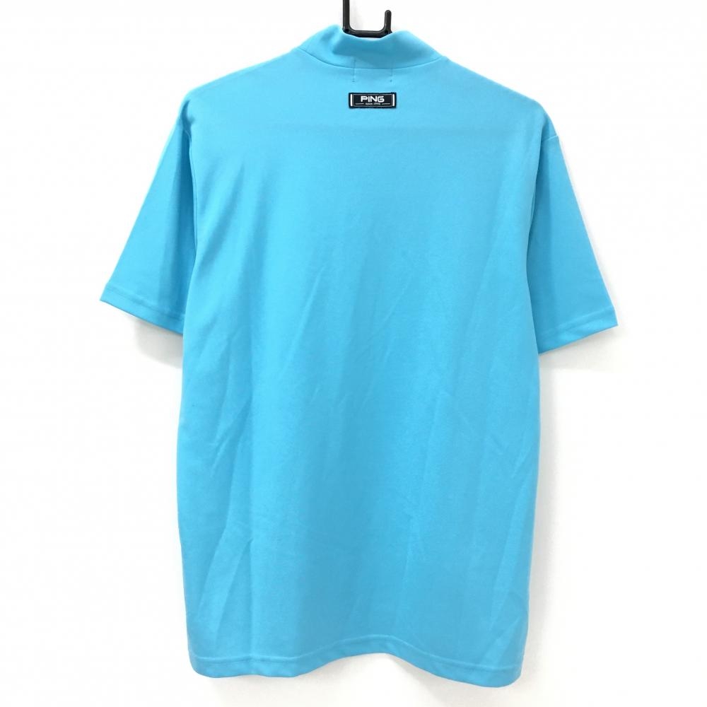 【美品】ピン 半袖ハイネックシャツ ライトブルー×白 フロントプリント メンズ L ゴルフウェア PING