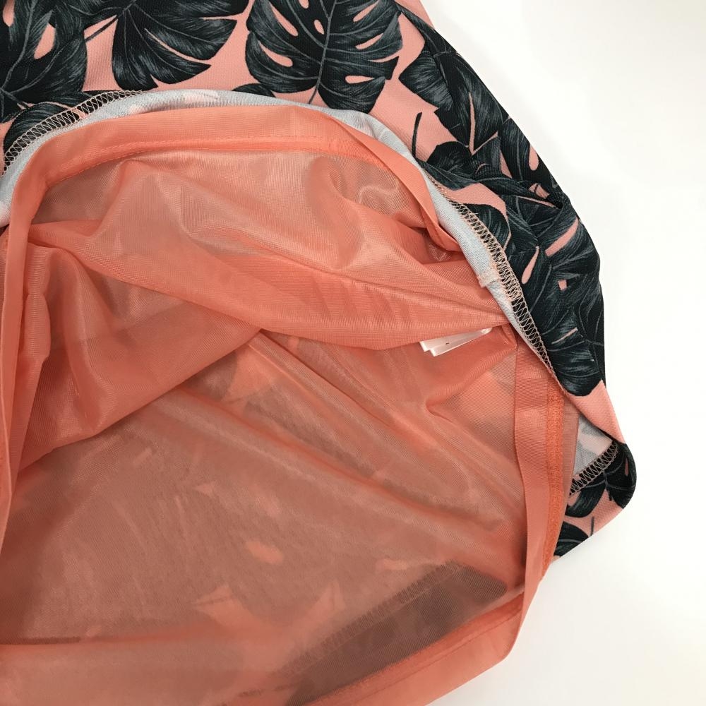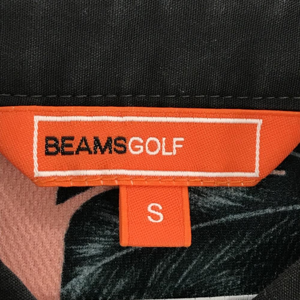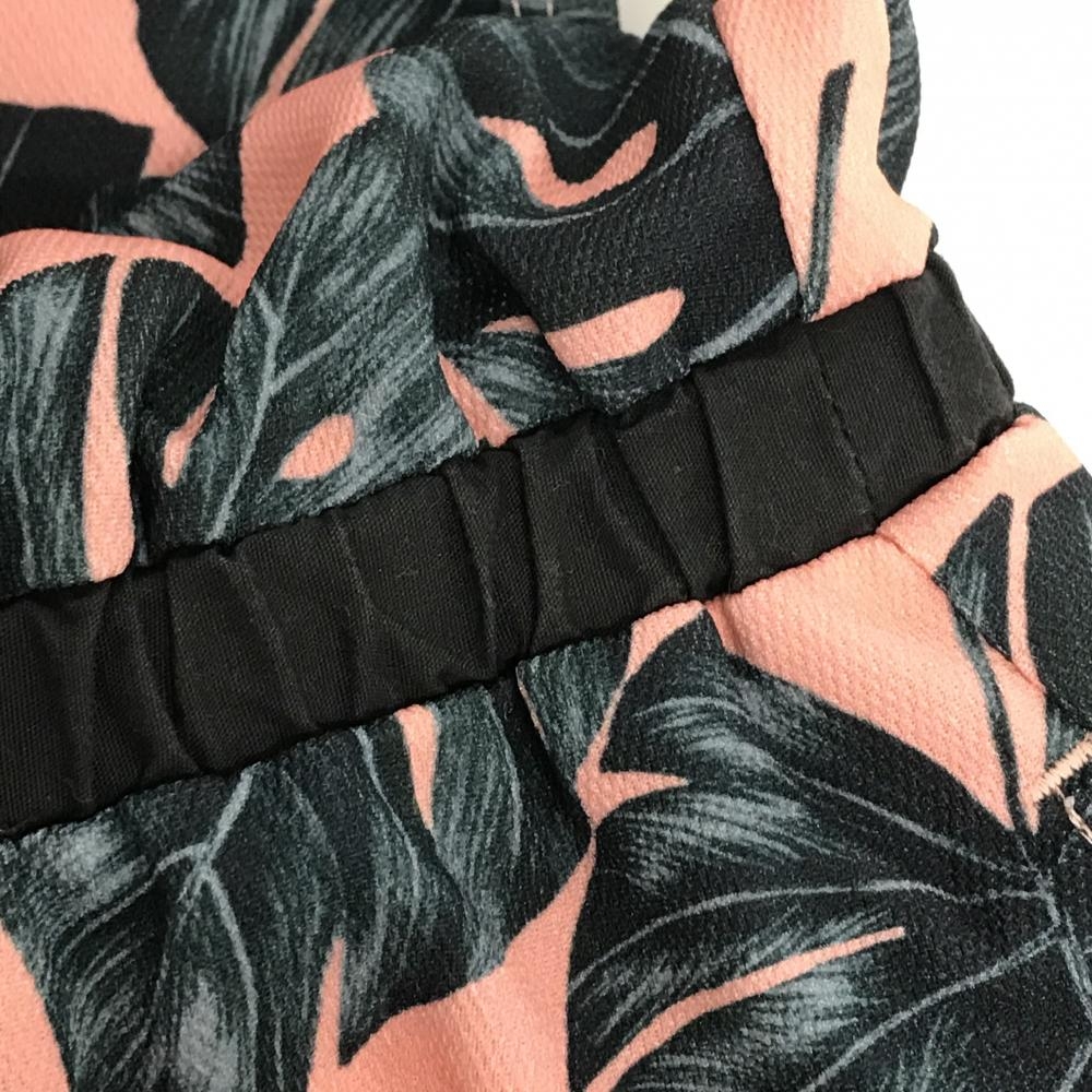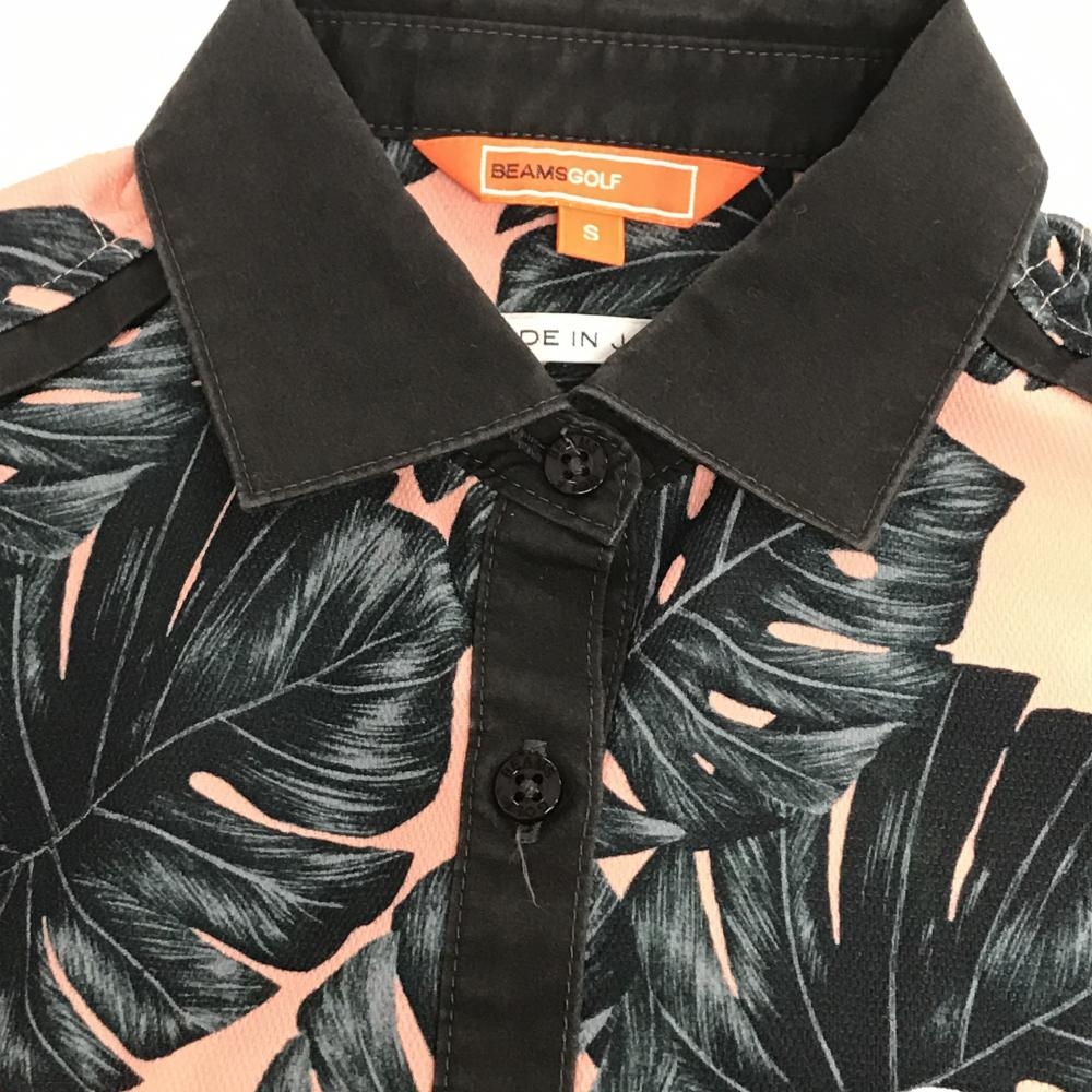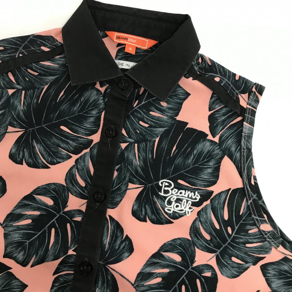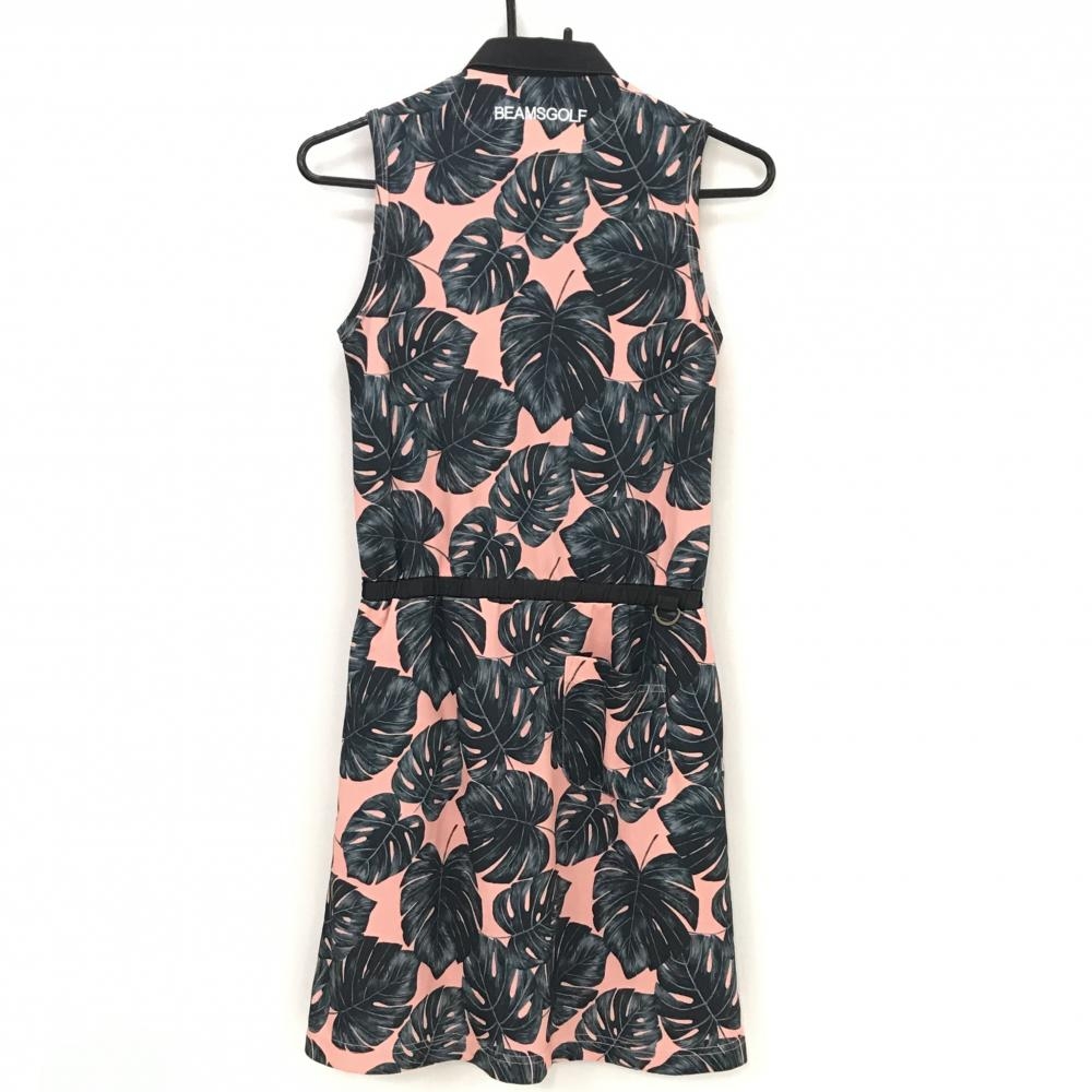 ビームスゴルフ ノースリーブポロワンピース ピンク×ダークグリーン リーフ総柄 レディース S ゴルフウェア BEAMS GOLF