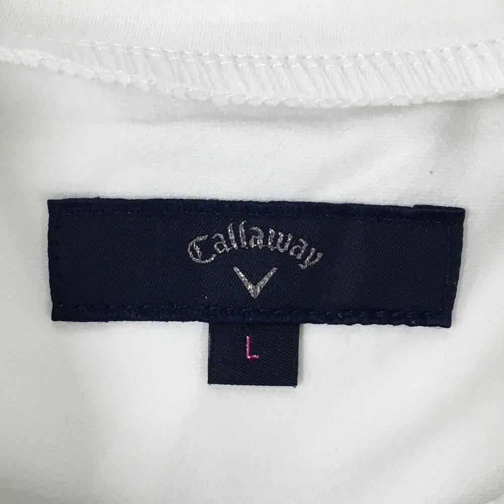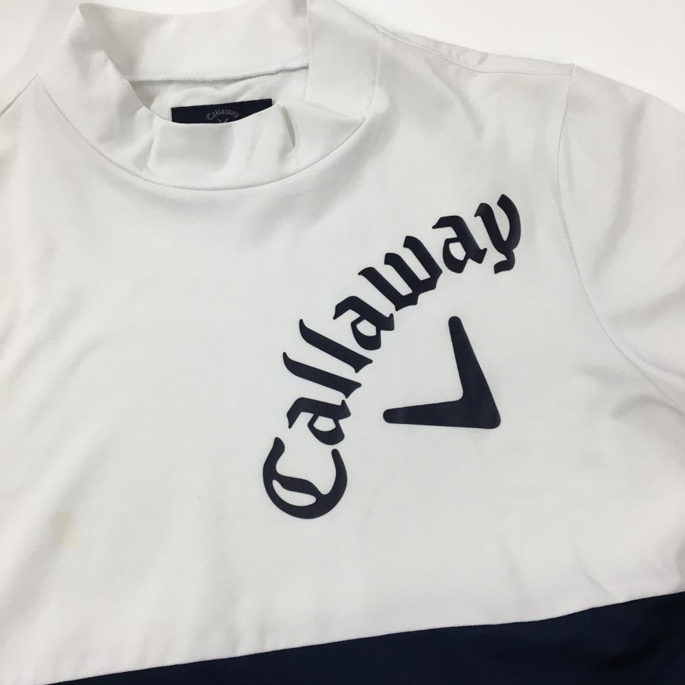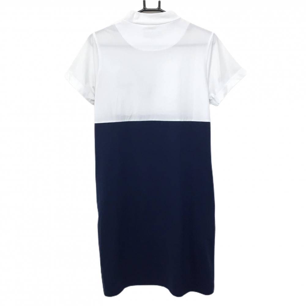 【美品】キャロウェイ 半袖ハイネックワンピース 白×ネイビー ロゴプリント レディース L ゴルフウェア Callaway