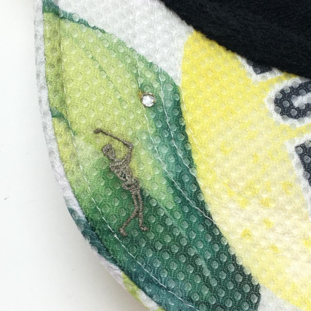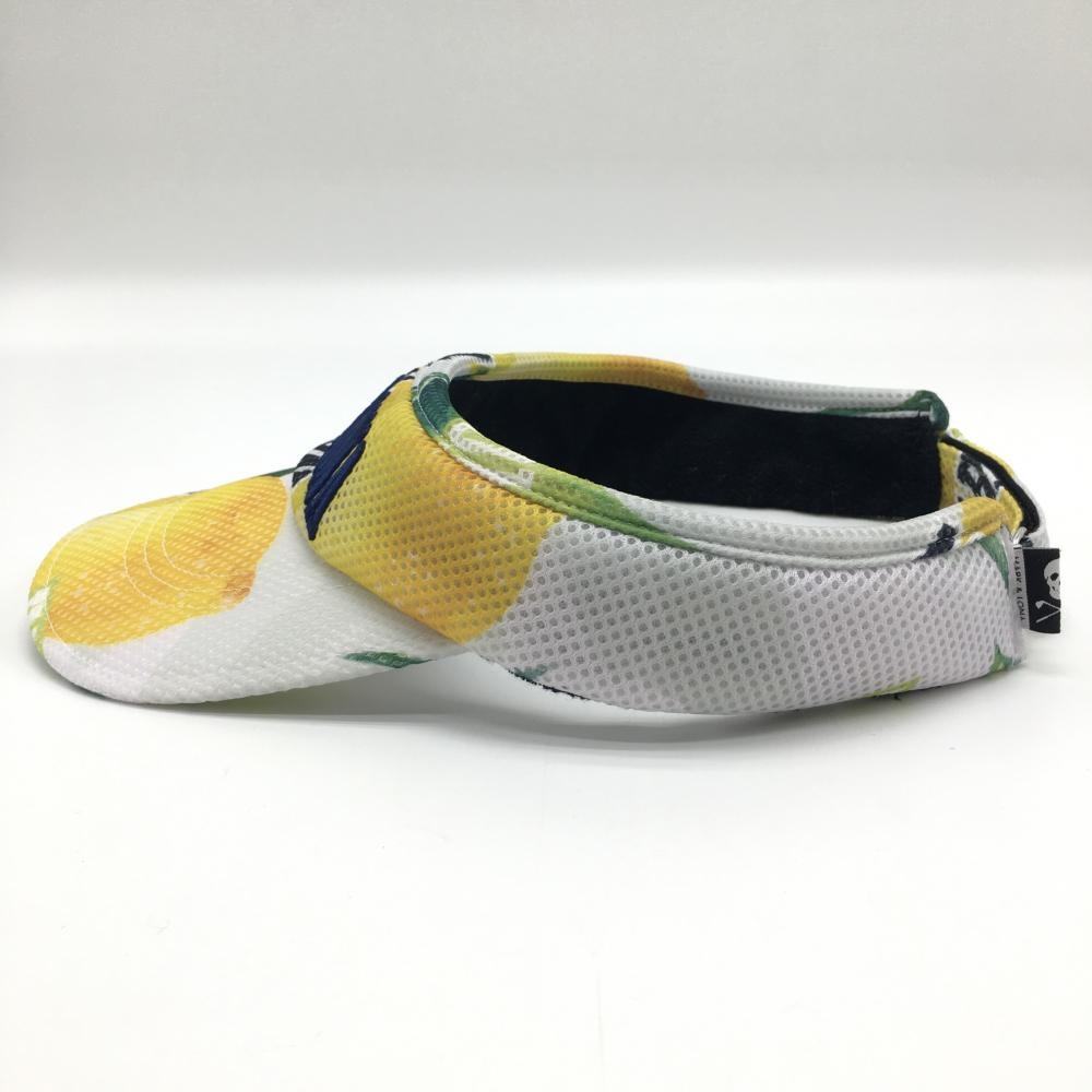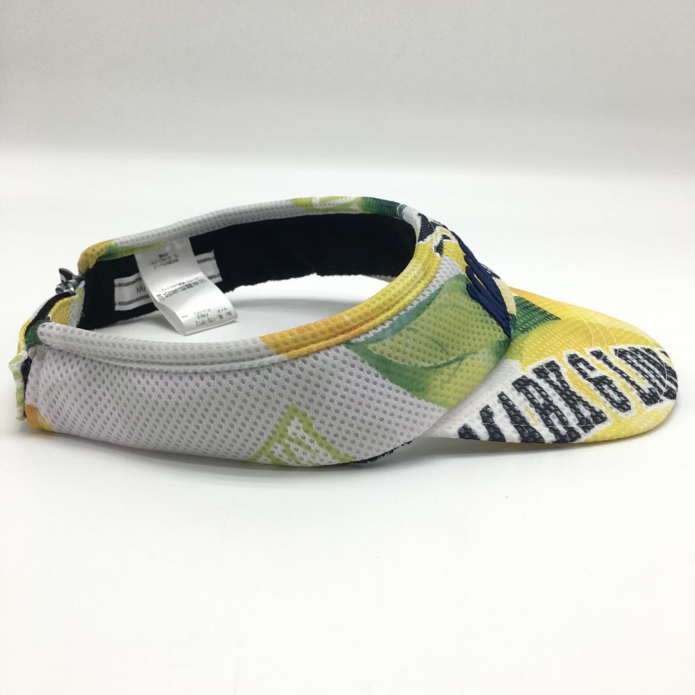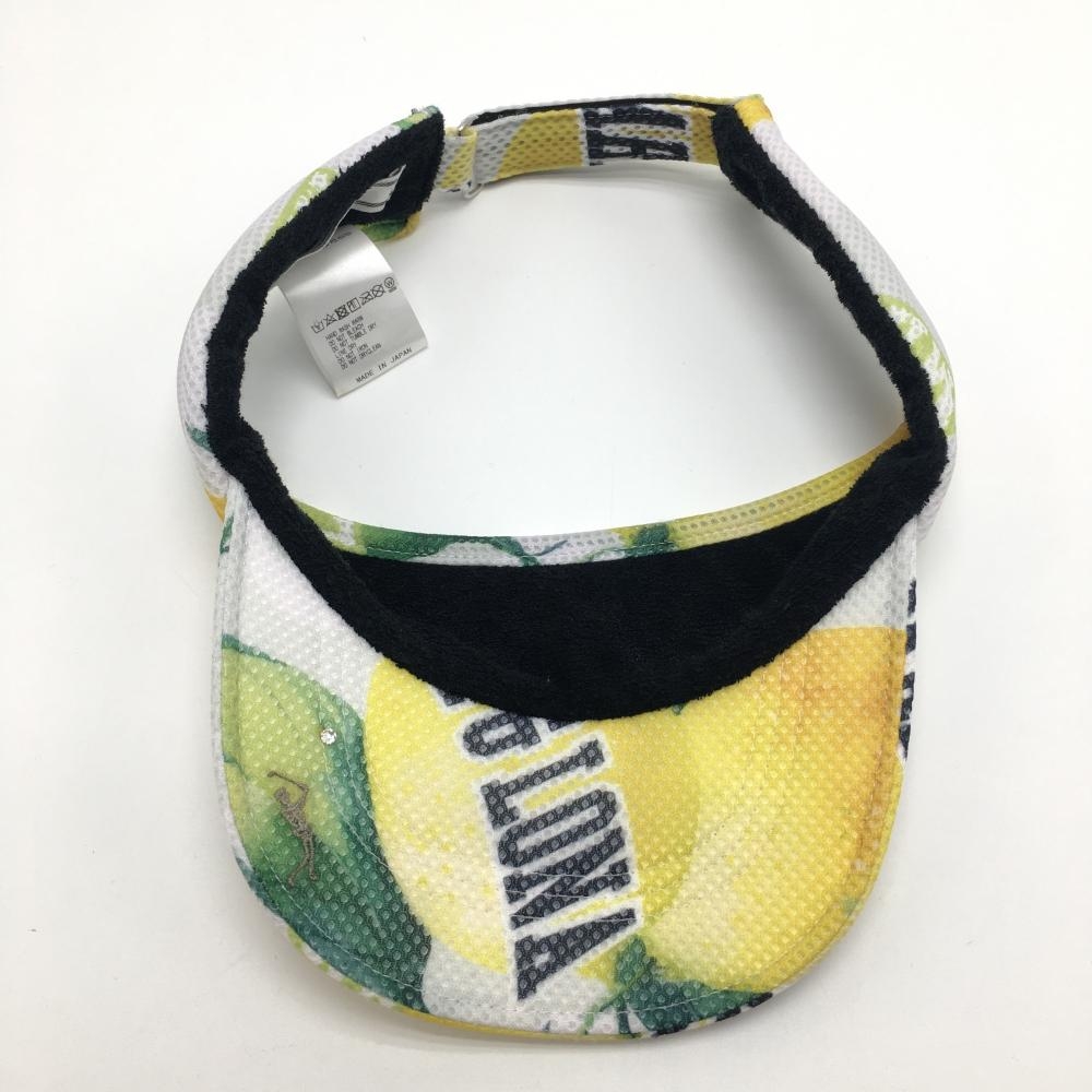 【美品】マークアンドロナ メッシュサンバイザー 白×イエロー×グリーン レモン柄 FREE ゴルフウェア MARK&LONA