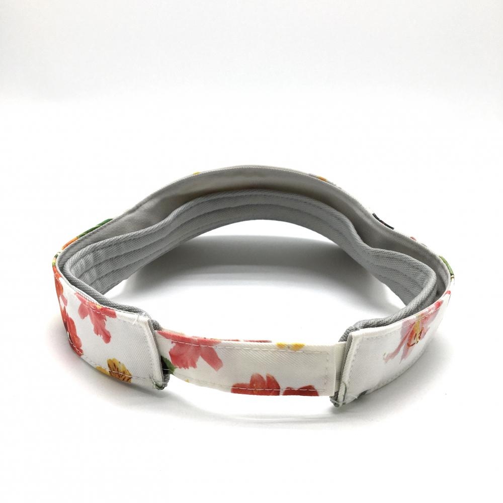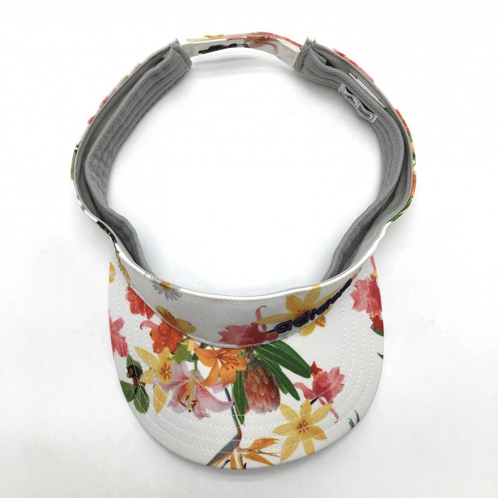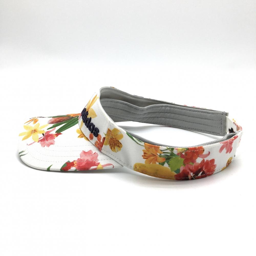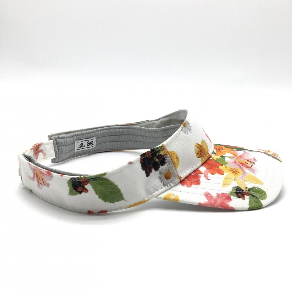 【美品】アディダス サンバイザー 白×マルチカラー 花柄 フリー(56-58cm) ゴルフウェア adidas