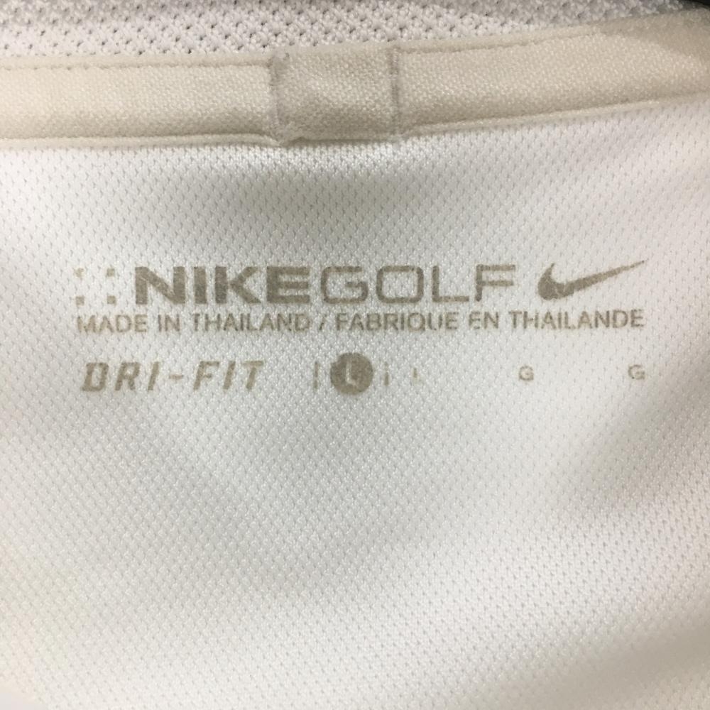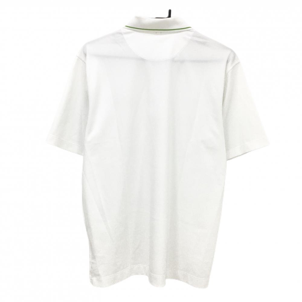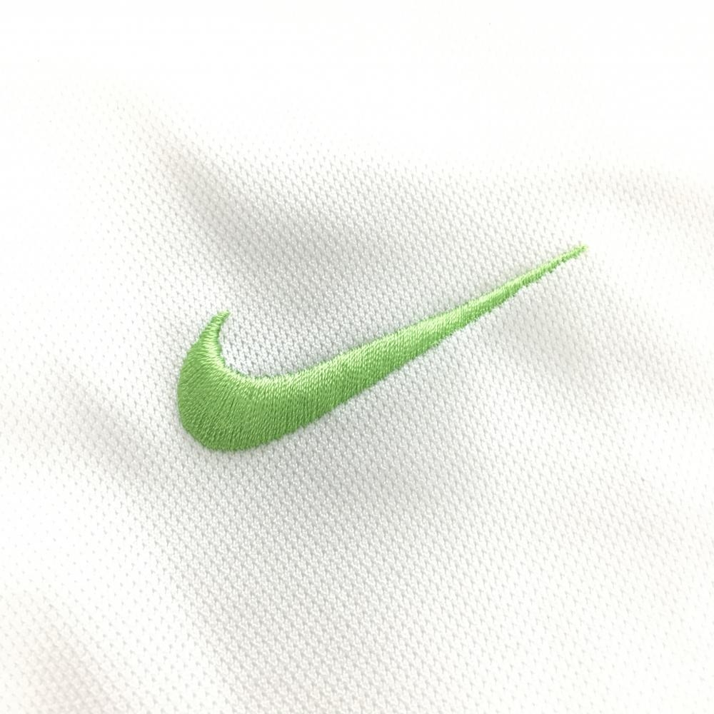 【超美品】ナイキゴルフ 半袖ポロシャツ 白×ライトグリーン ロゴ刺しゅう 襟ライン メンズ L ゴルフウェア NIKE