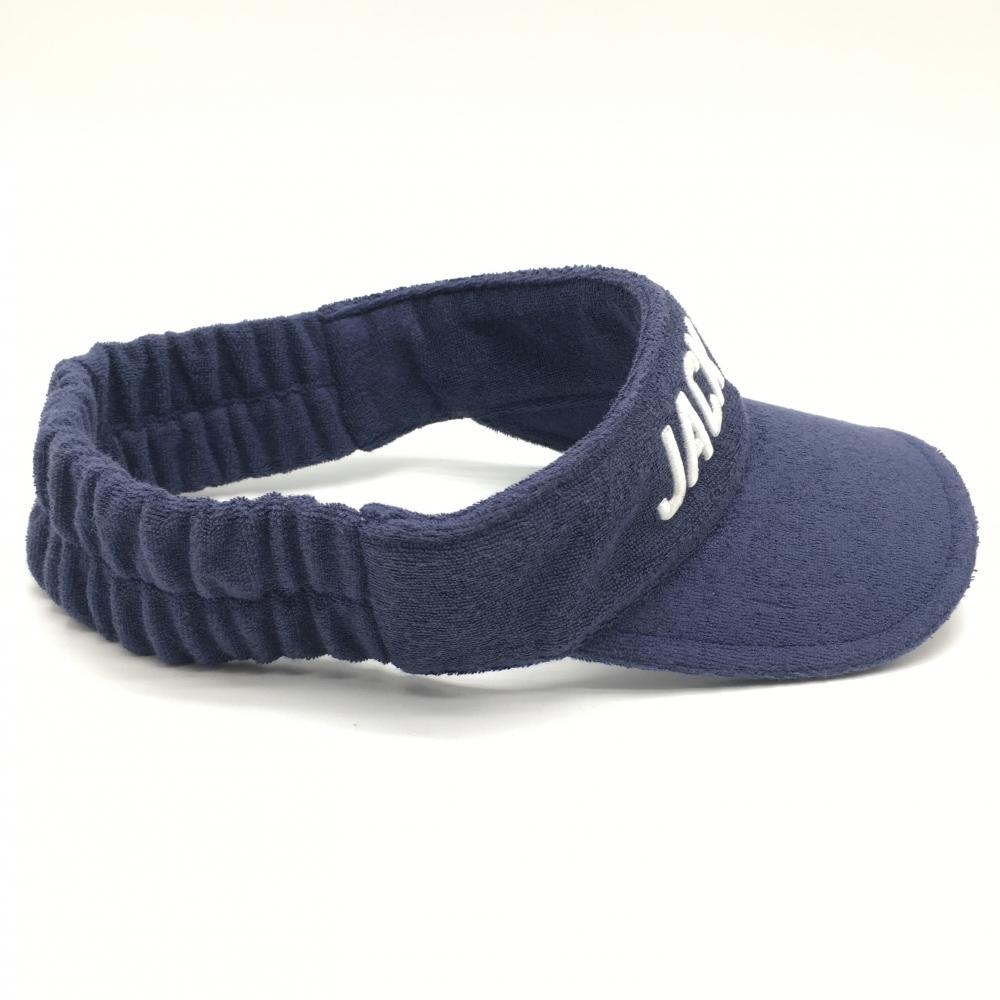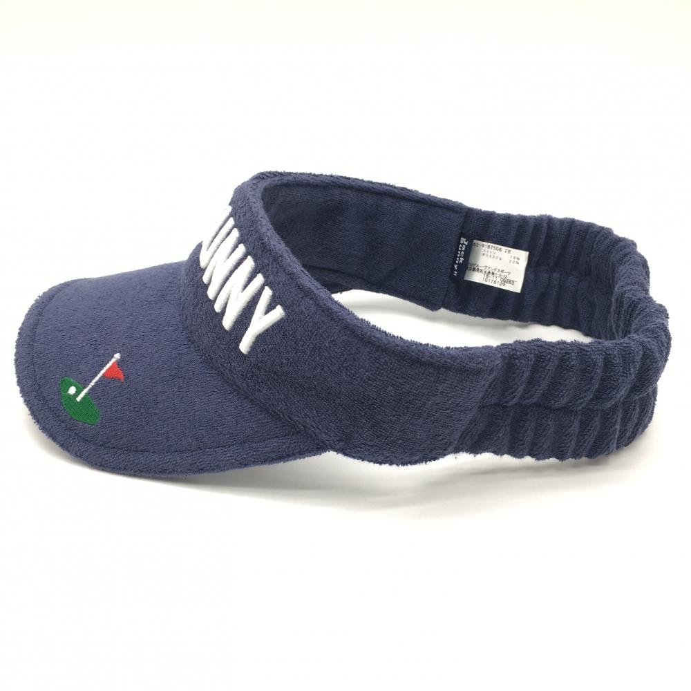 【超美品】ジャックバニー サンバイザー ネイビー×白 パイル地 立体ロゴ刺しゅう 後ろゴム FR ゴルフウェア Jack Bunny