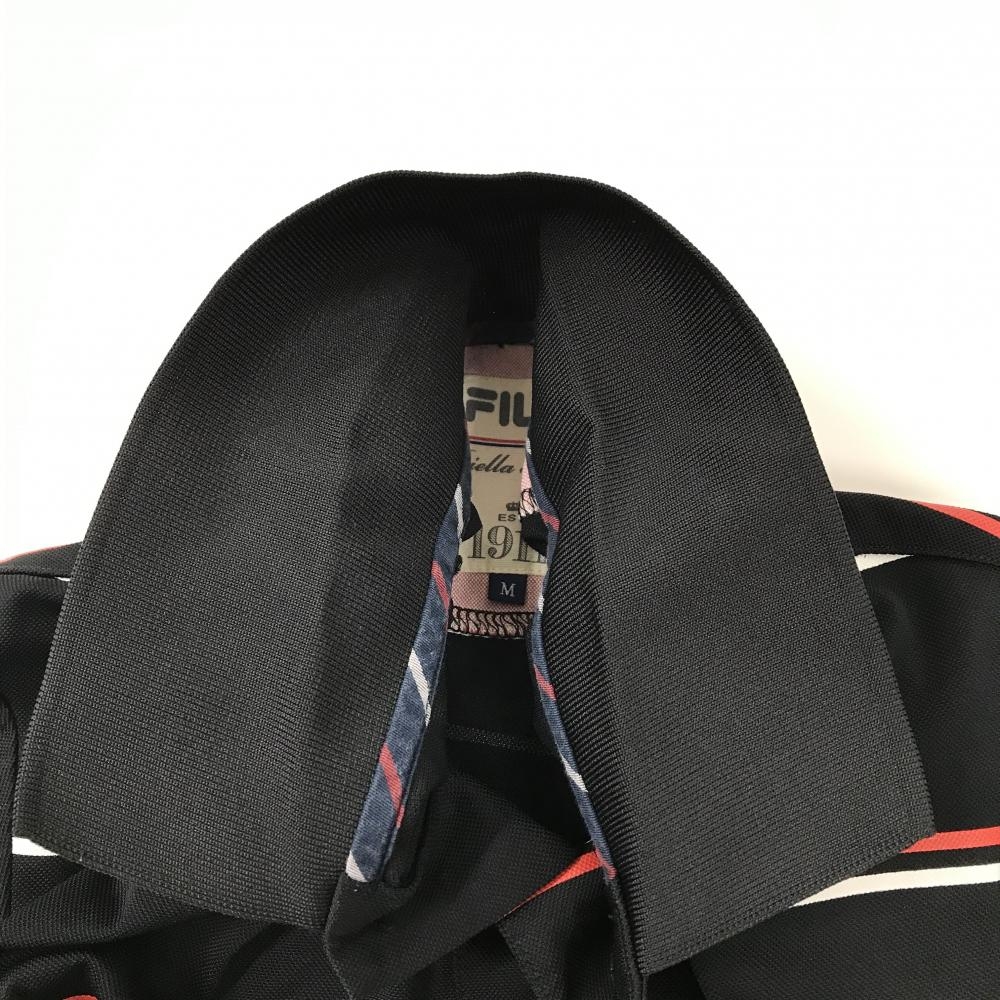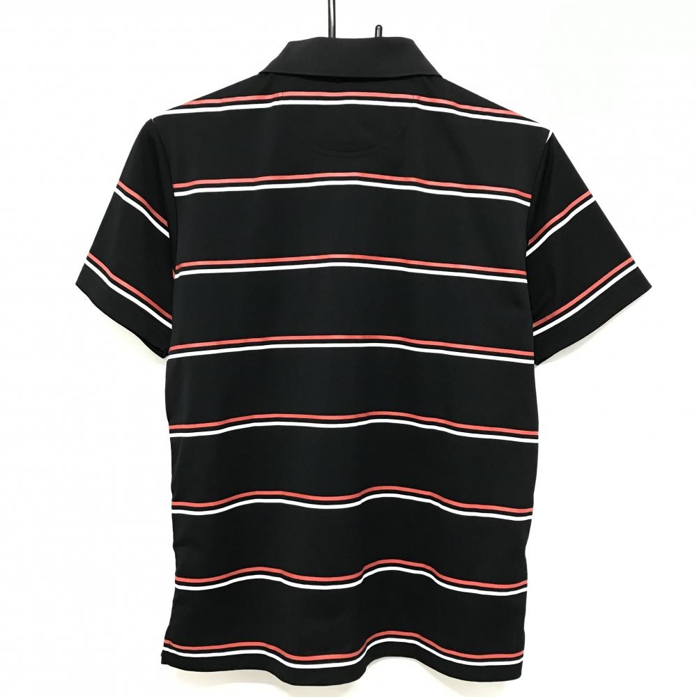 【美品】フィラ 半袖ポロシャツ 黒×レッド ボーダー 勲章刺しゅう メンズ M ゴルフウェア FILA GOLF
