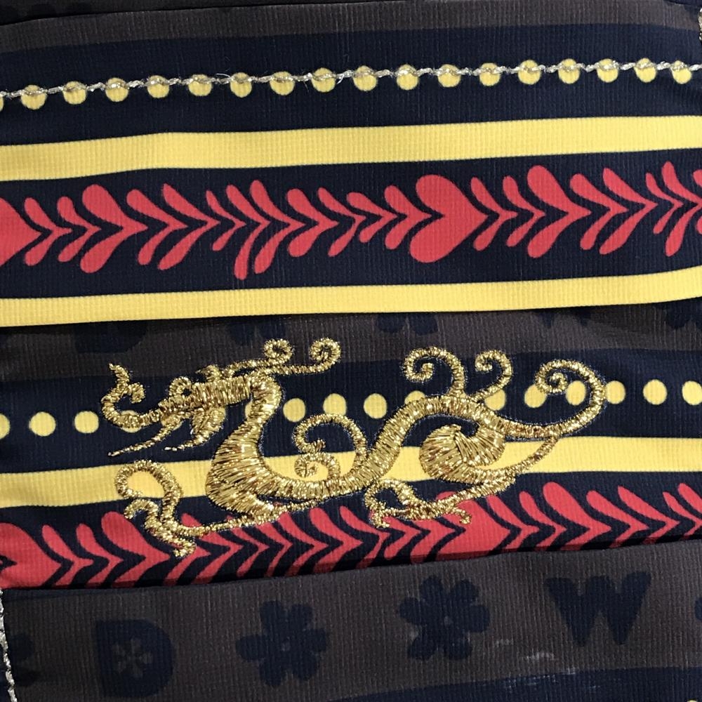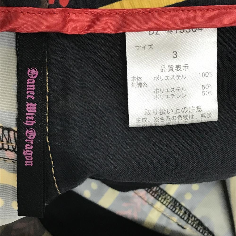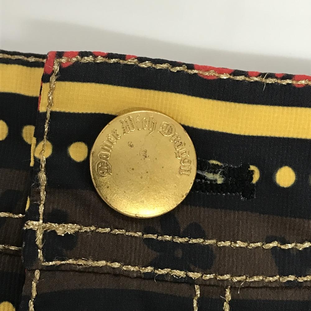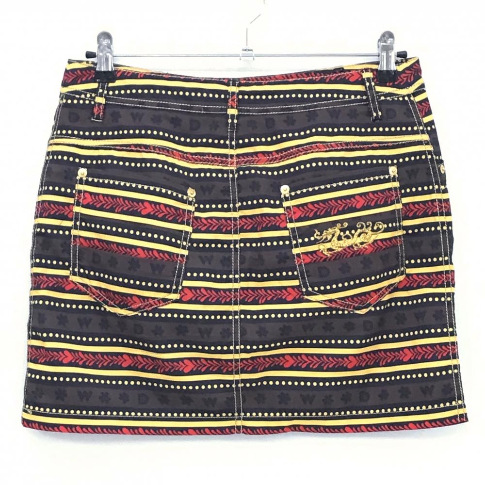 【超美品】ダンスウィズドラゴン スカート 黒×ブラウン×イエロー 総柄 ボーダー ドット レディース 3(L) ゴルフウェア Dance With Dragon