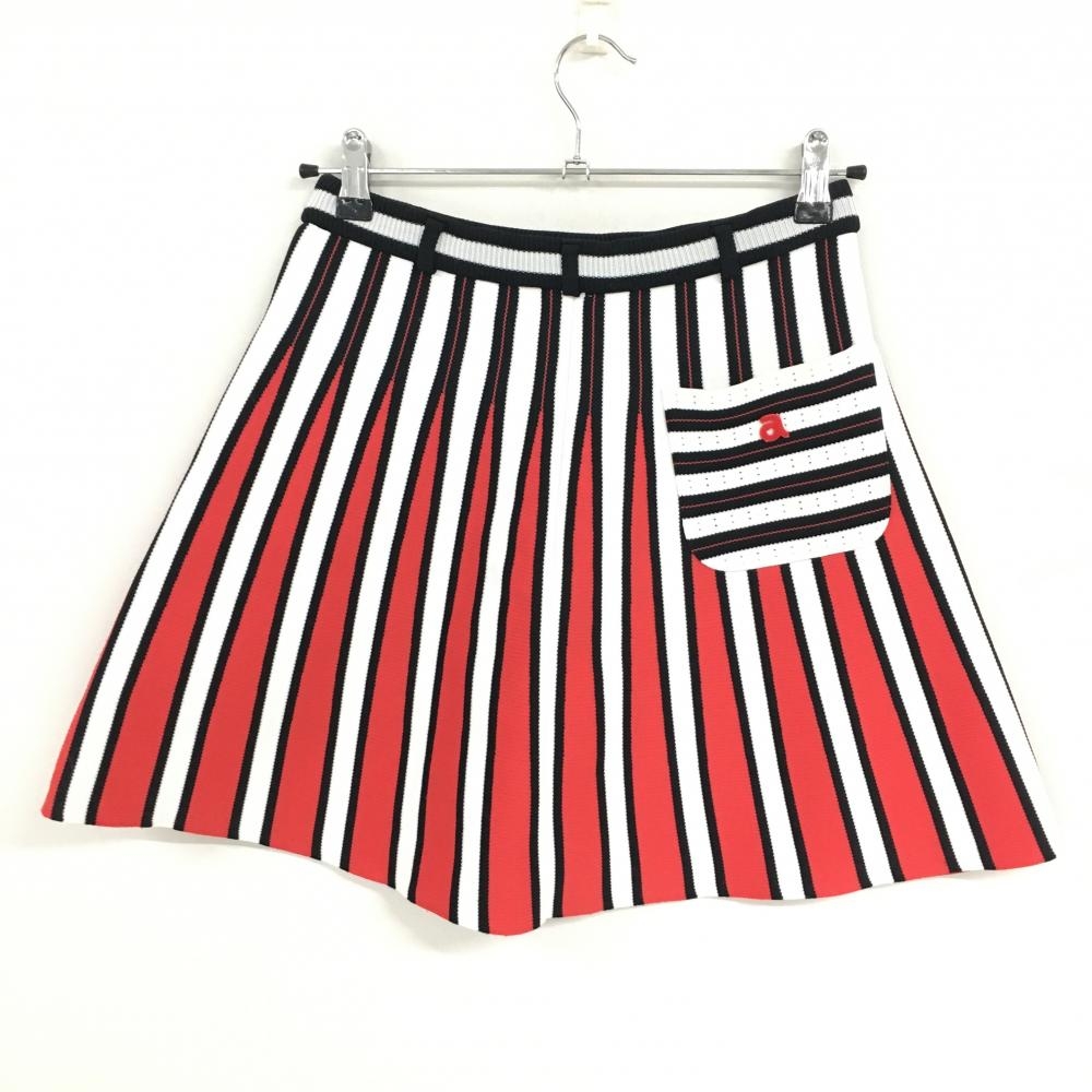 【美品】アルチビオ ニットスカート 白×レッド×黒 ストライプ調 レディース 38(M) ゴルフウェア archivio
