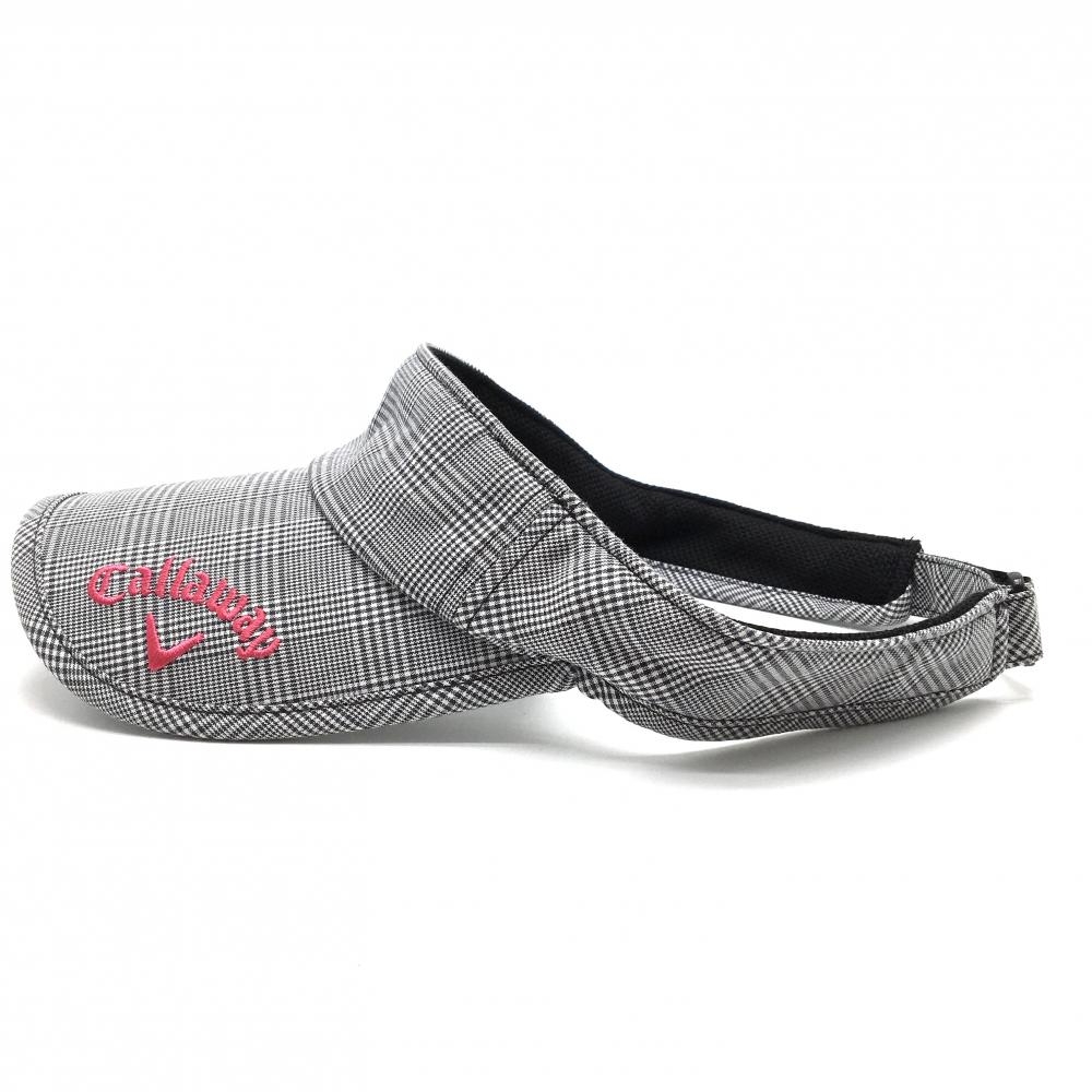 【美品】キャロウェイ サンバイザー 黒×白 チェック フリーサイズ(55-57㎝) ゴルフウェア Callaway