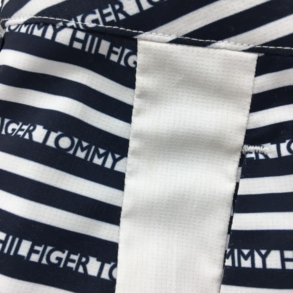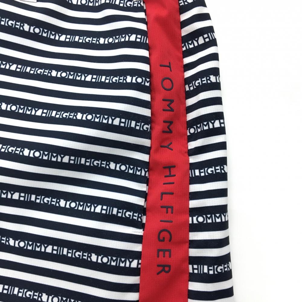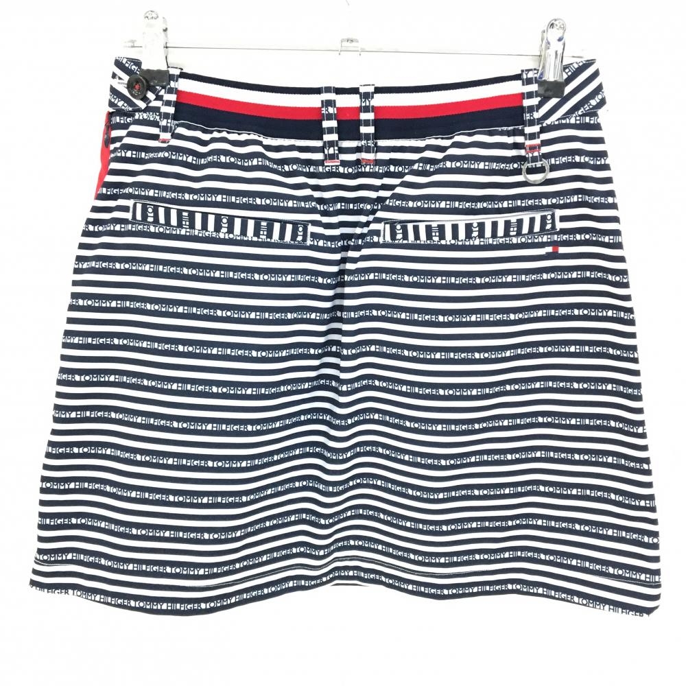 【美品】トミーヒルフィガーゴルフ スカート ネイビー×白 ボーダー ロゴ サイドライン レディース L ゴルフウェア Tommy Hilfiger Golf