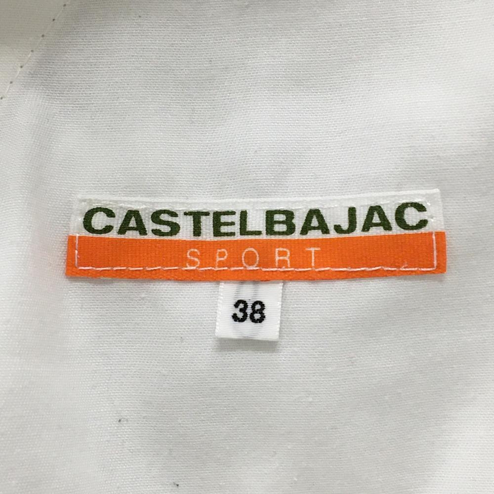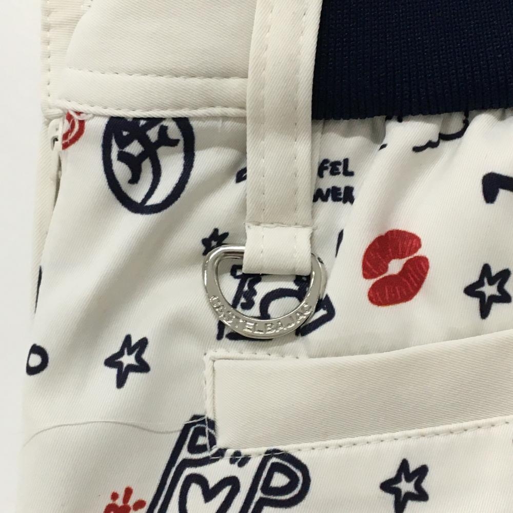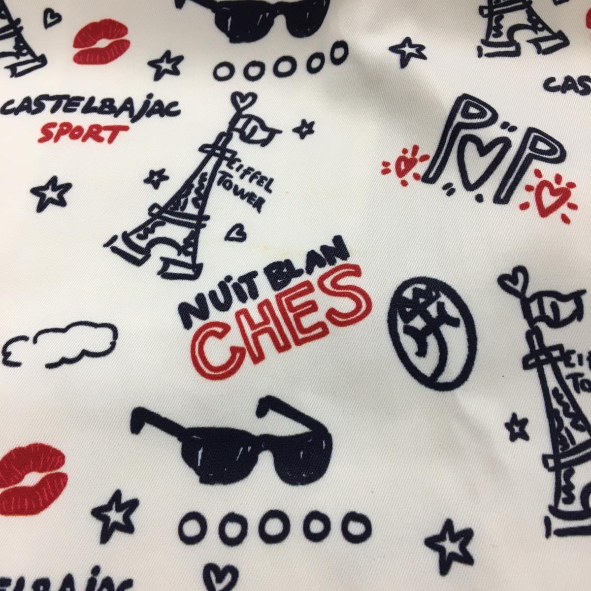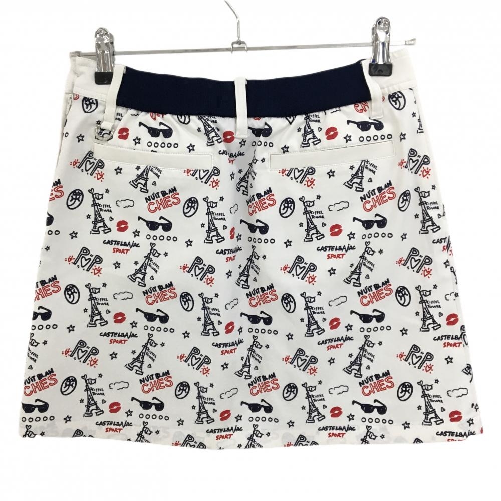 【美品】カステルバジャック スカート 白×ネイビー エッフェル塔総柄 ウエスト後ろゴム レディース 38 ゴルフウェア CASTELBAJAC