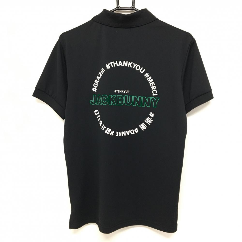 【超美品】ジャックバニー 半袖ポロシャツ 黒 ロゴ白 バックプリント メンズ 4(M) ゴルフウェア 2023年モデル Jack Bunny
