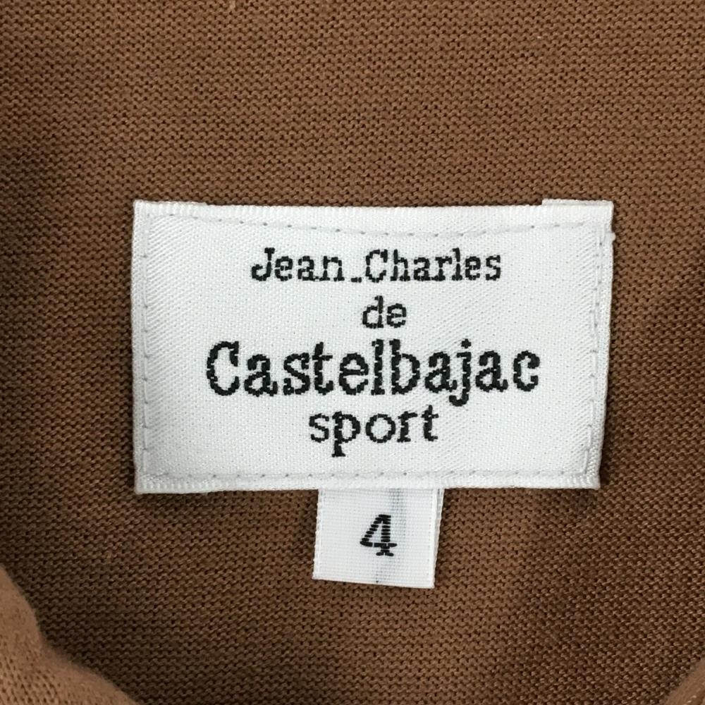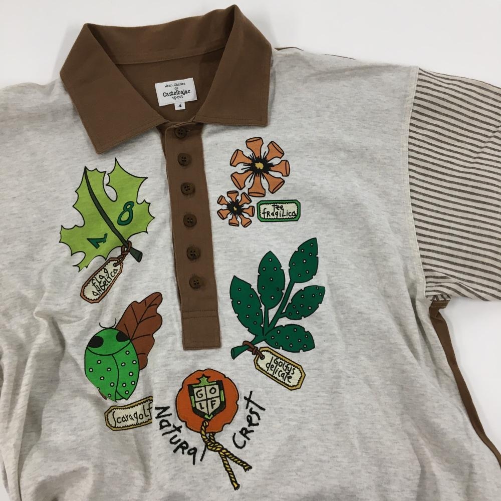 【超美品】カステルバジャックスポーツ 半袖ポロシャツ 杢グレー×ブラウン フロントプリント メンズ 4(XL) ゴルフウェア CASTELBAJAC