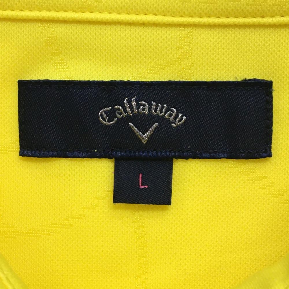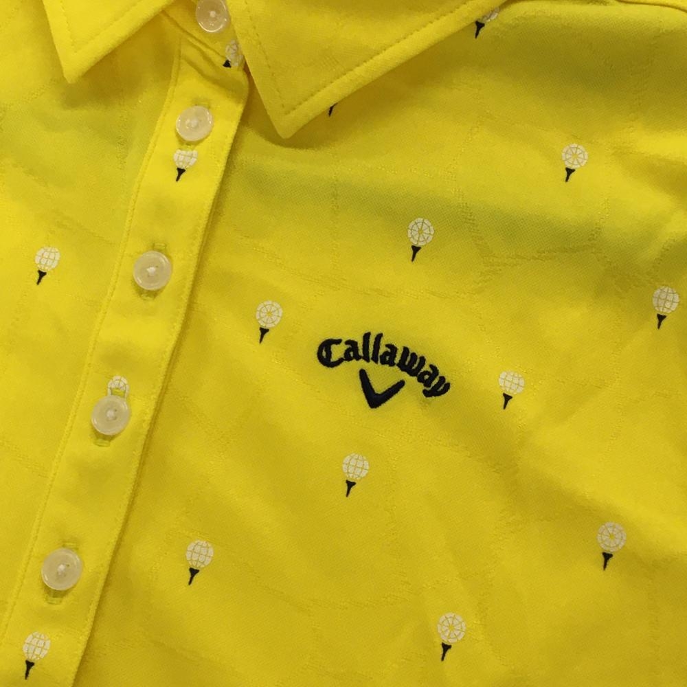 【超美品】キャロウェイ 長袖ポロシャツ イエロー×白 地模様 ボール柄 レディース L ゴルフウェア Callaway