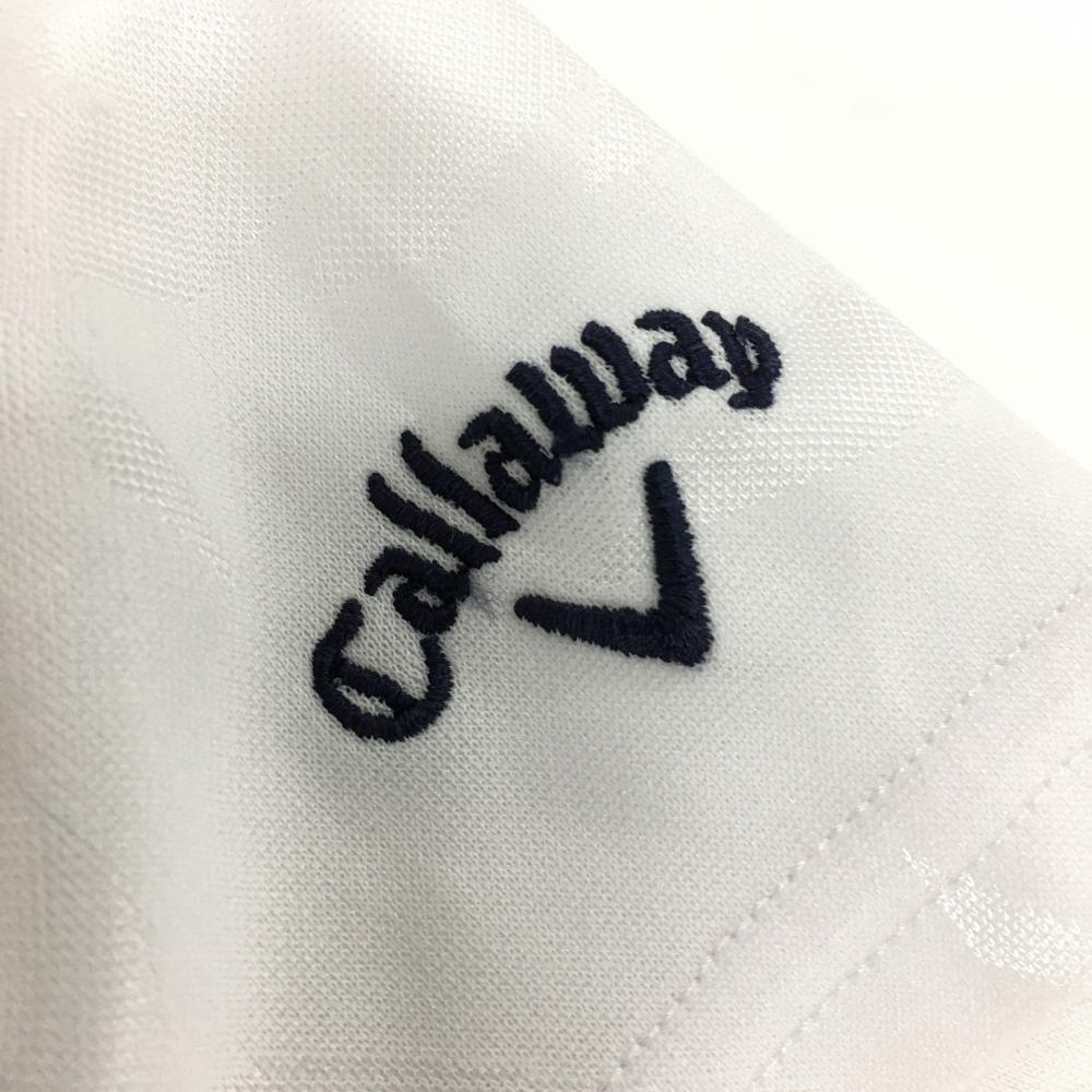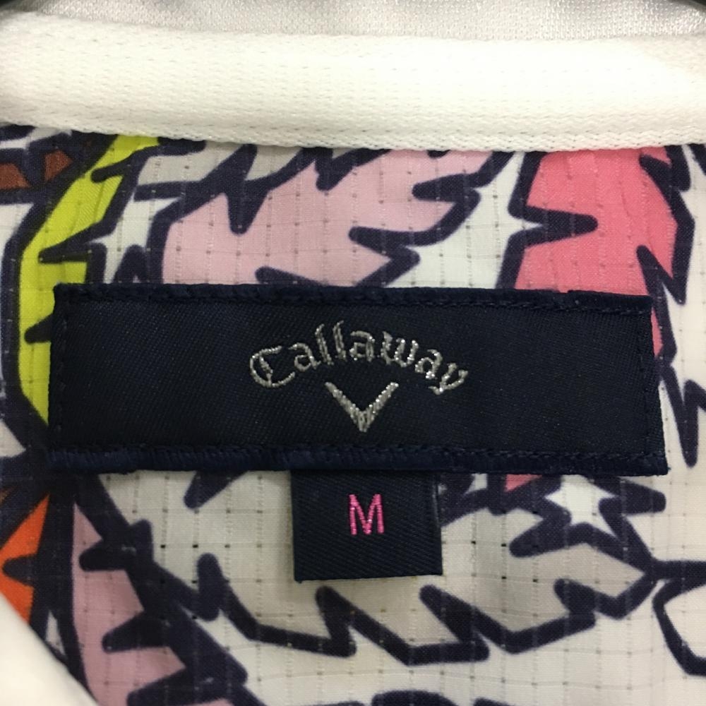 キャロウェイ 半袖ポロシャツ 白 ヤシの木総柄 ロゴ刺しゅう レディース M ゴルフウェア Callaway