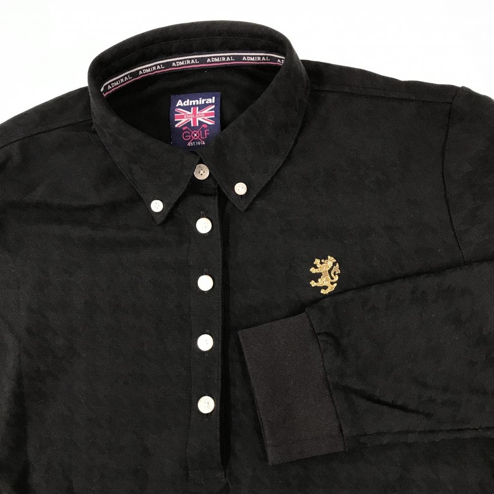 【美品】アドミラル 長袖ポロシャツ 黒 千鳥格子 ボタンダウン レディース L ゴルフウェア Admiral