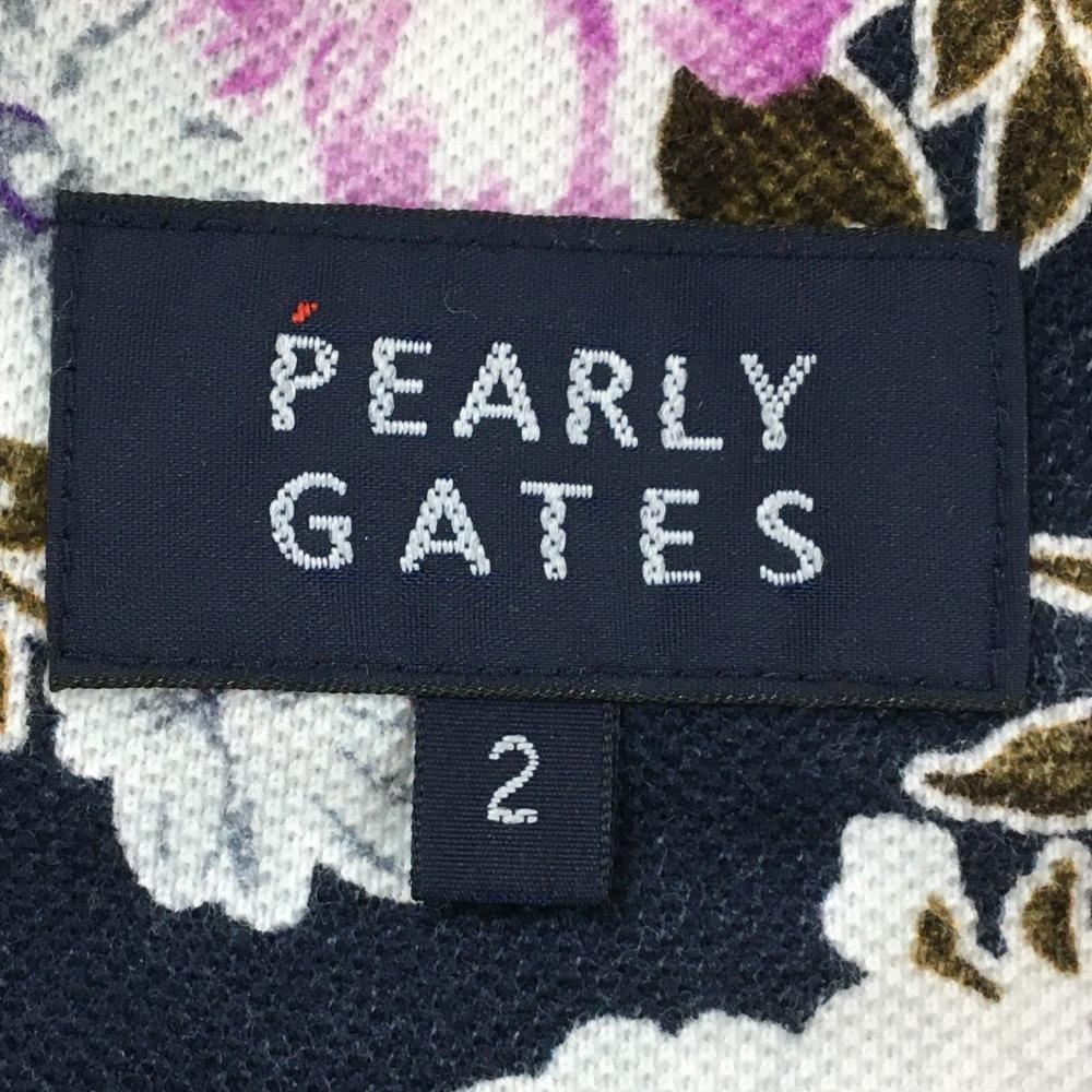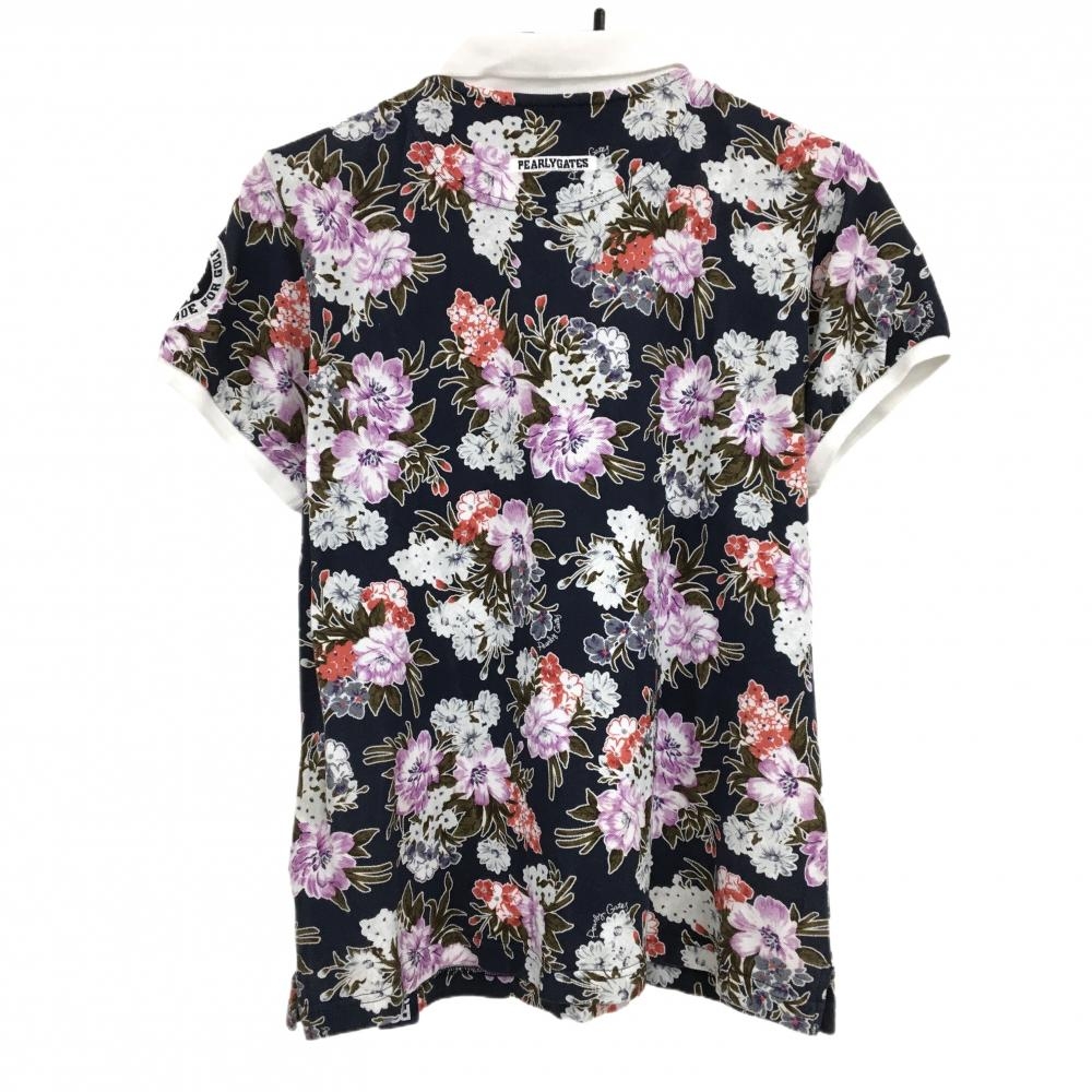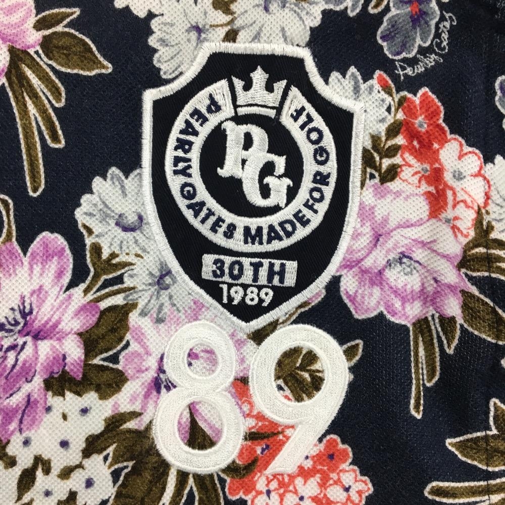【美品】パーリーゲイツ 半袖ポロシャツ ネイビー×白 花柄 30周年 レディース 2(L) ゴルフウェア PEARLY GATES