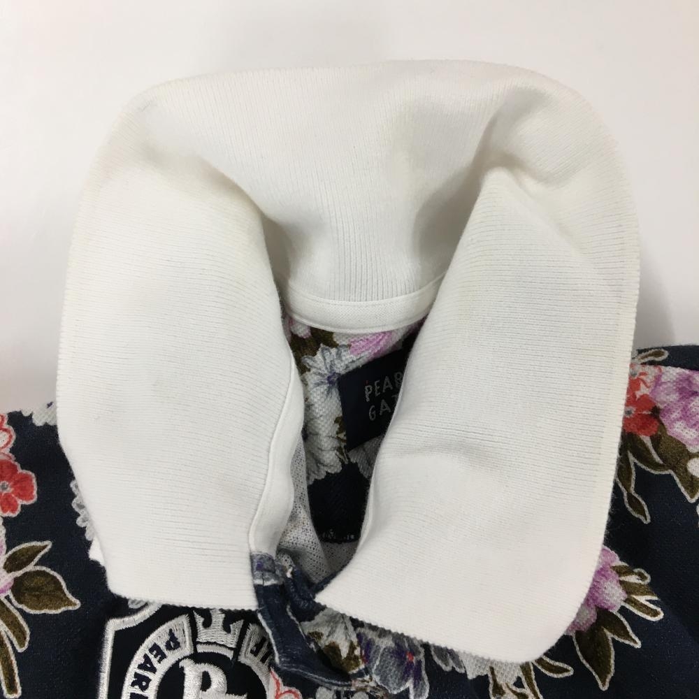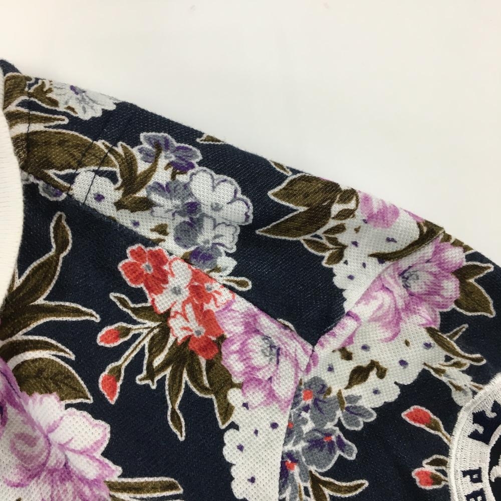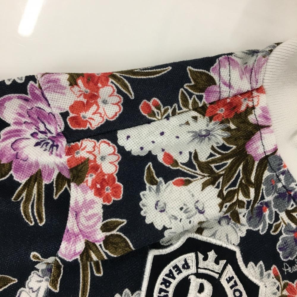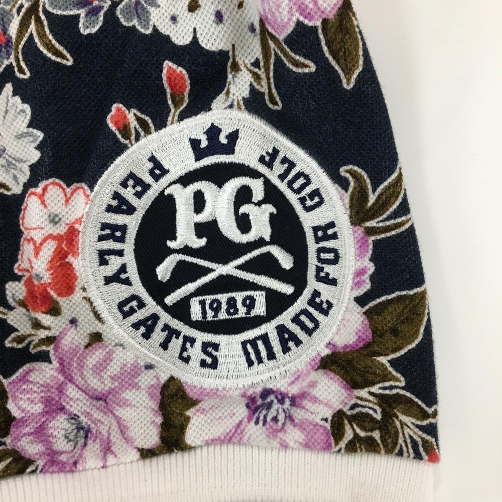 【美品】パーリーゲイツ 半袖ポロシャツ ネイビー×白 花柄 30周年 レディース 2(L) ゴルフウェア PEARLY GATES