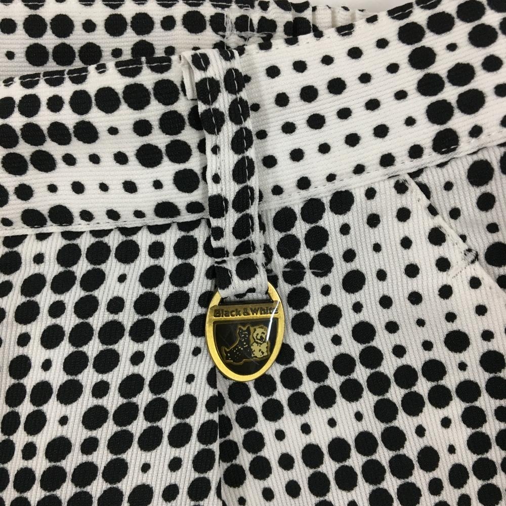 【美品】ブラックアンドホワイト キュロットスカート 白×黒 ドット調 総柄 レディース L ゴルフウェア Black&White