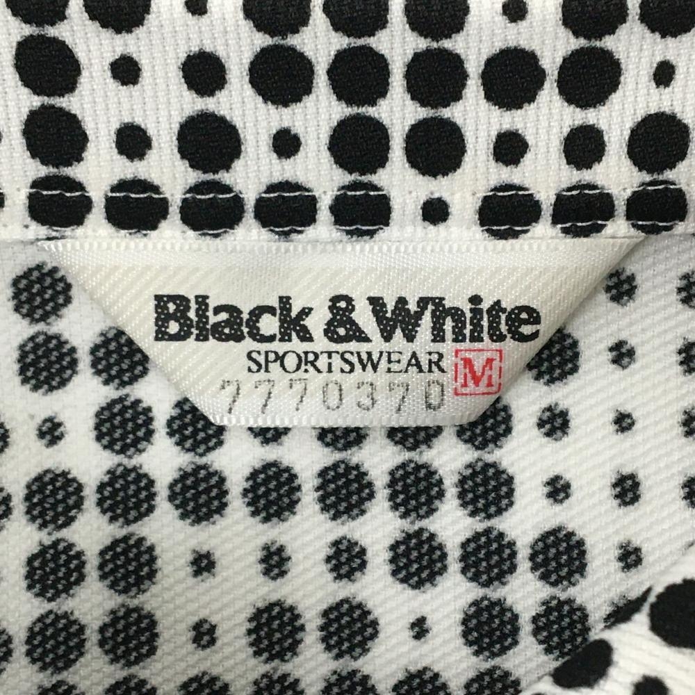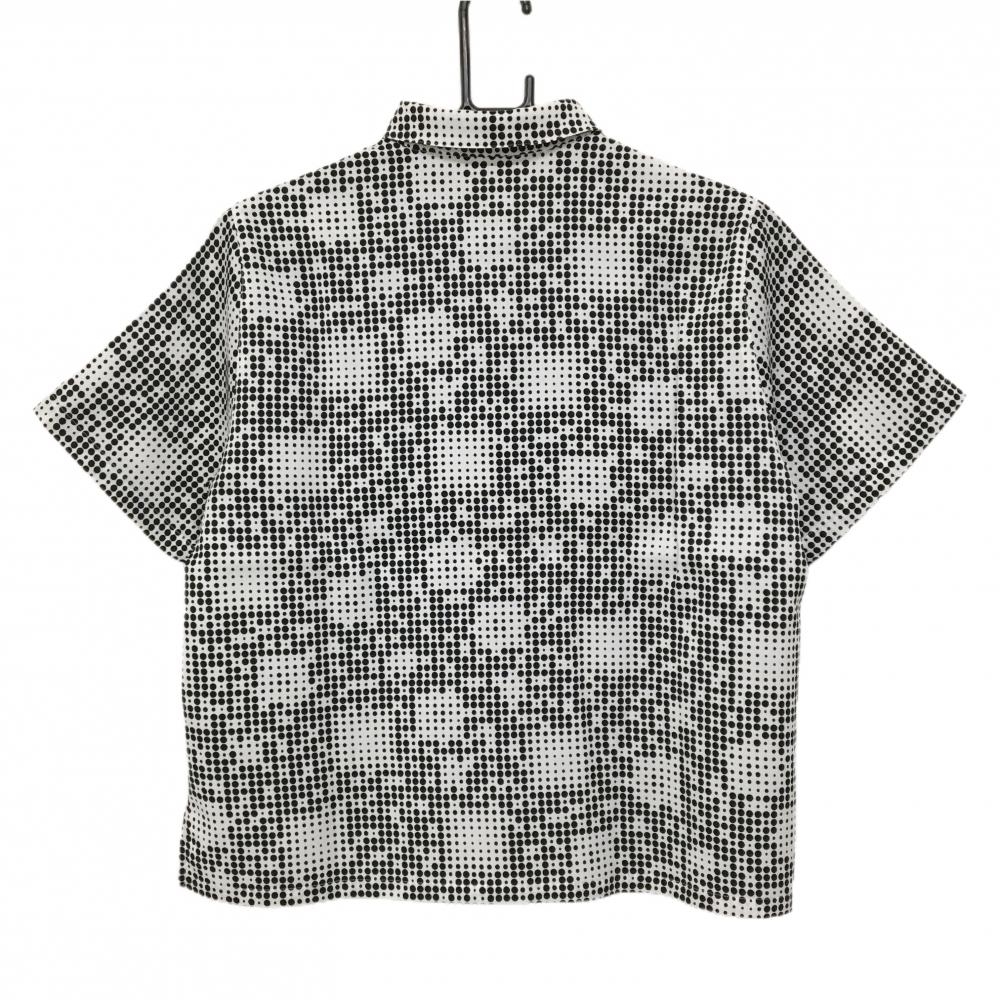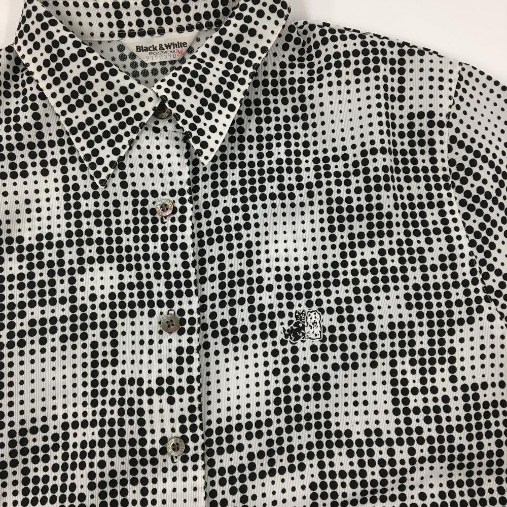 【超美品】ブラックアンドホワイト 半袖シャツ 白×黒 ドット調 総柄 テリア犬刺しゅう レディース M ゴルフウェア Black&White