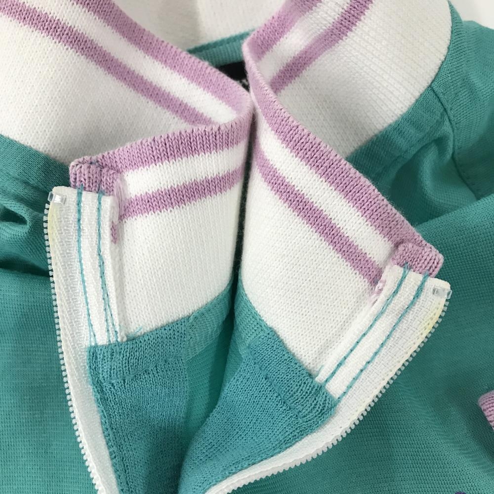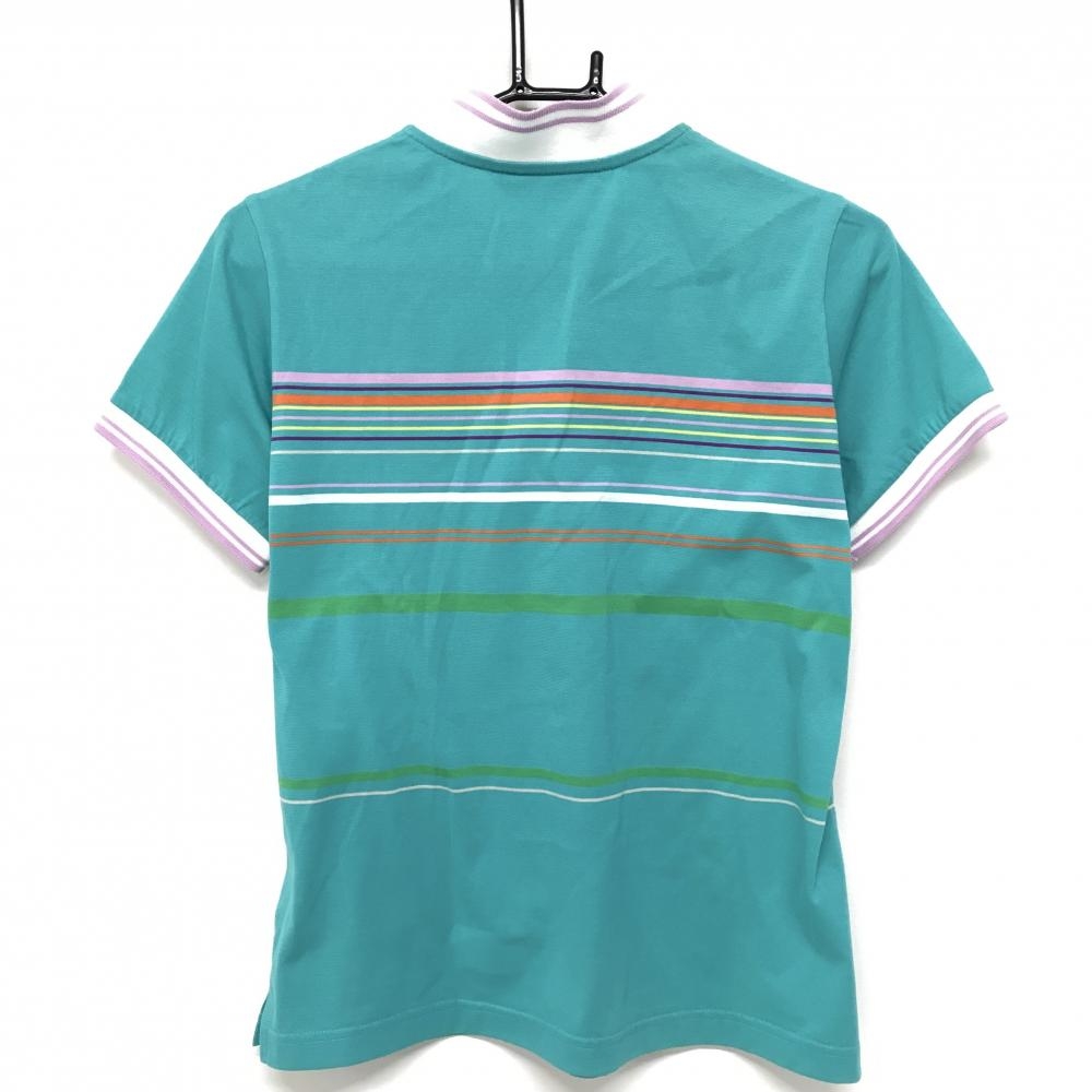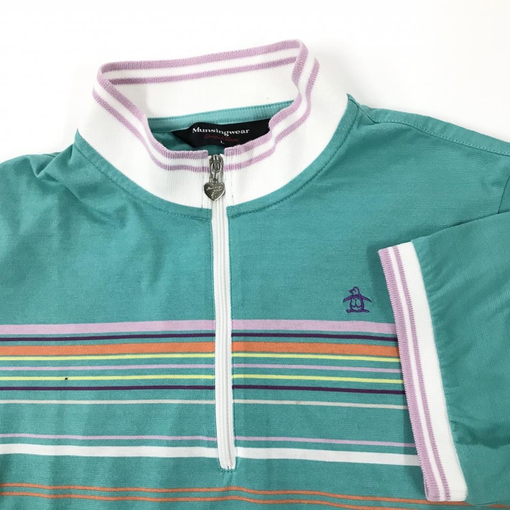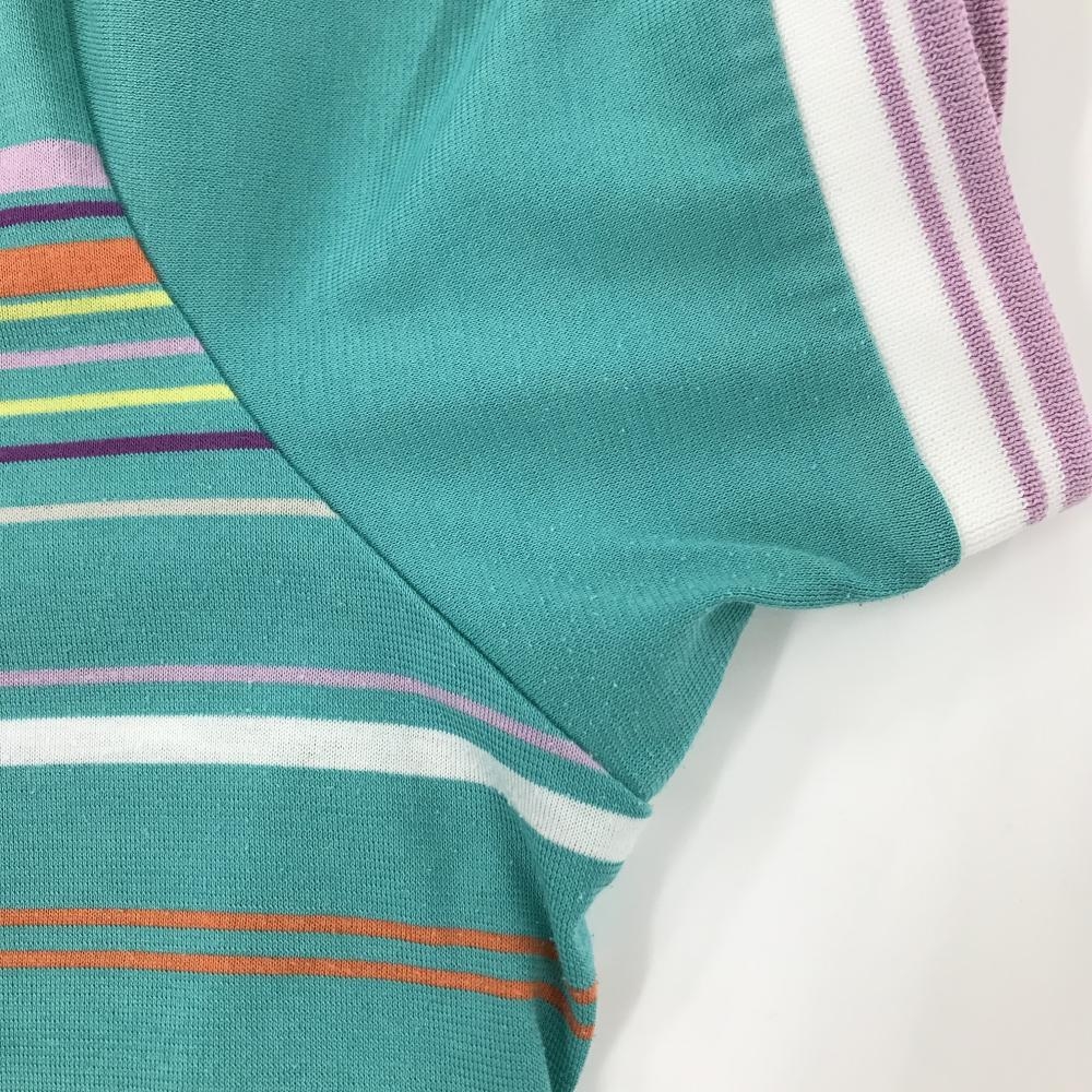 マンシングウェア 半袖ハイネックシャツ ライトグリーン×マルチカラー ランダムストライプ レディース L ゴルフウェア Munsingwear
