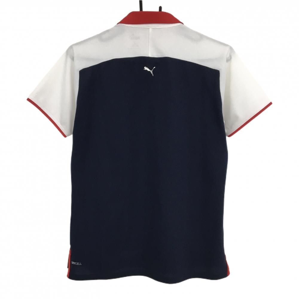 プーマ 半袖ポロシャツ ネイビー×白 バイカラー ロゴ レディース XL ゴルフウェア PUMA