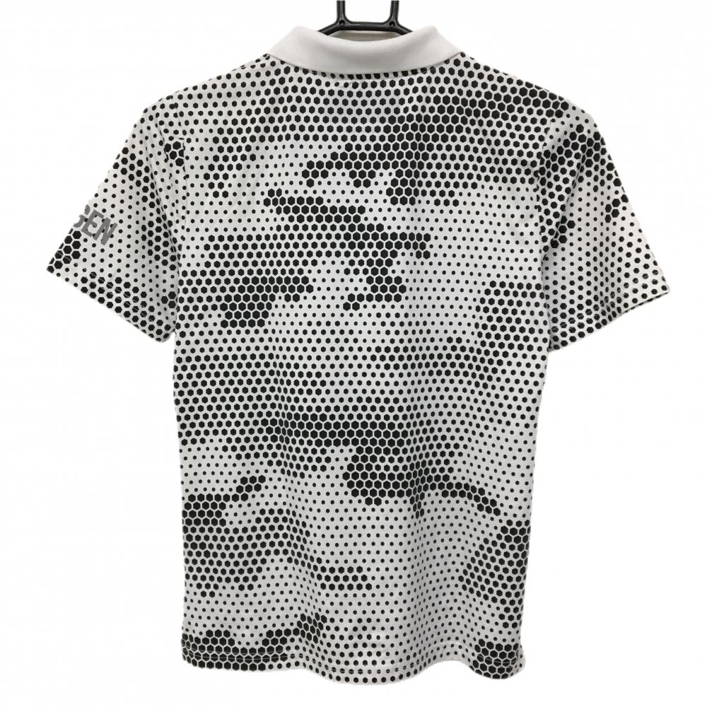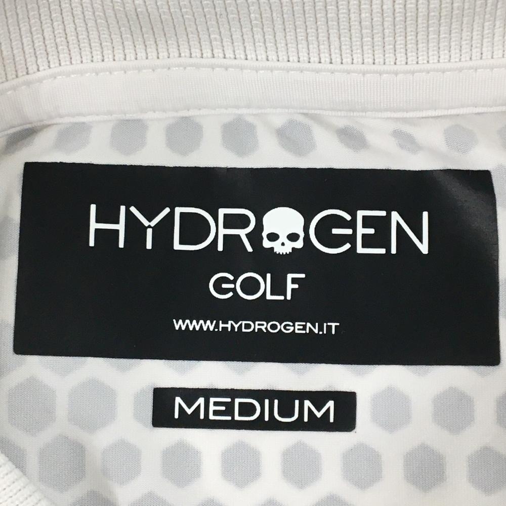 ハイドロゲン 半袖ポロシャツ 白×黒 総柄 スカルプリント レディース MEDIUM ゴルフウェア HYDROGEN