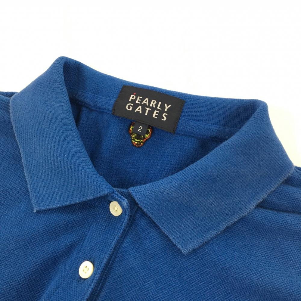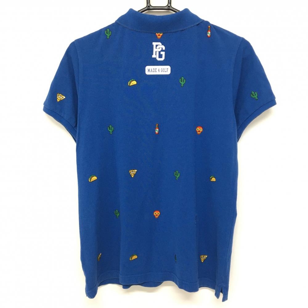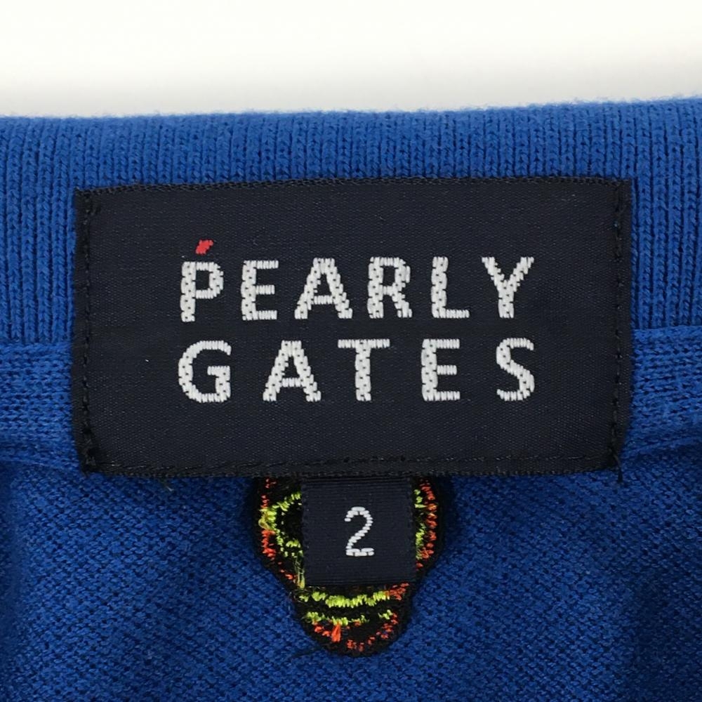 パーリーゲイツ 半袖ポロシャツ ブルー×マルチカラー 刺しゅう総柄 The Simpsons レディース 2(L) ゴルフウェア PEARLY GATES