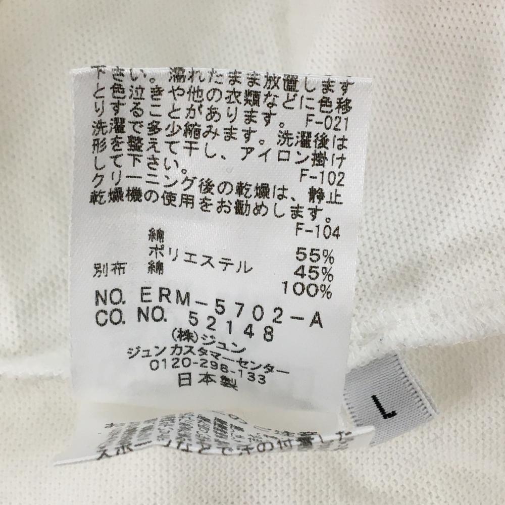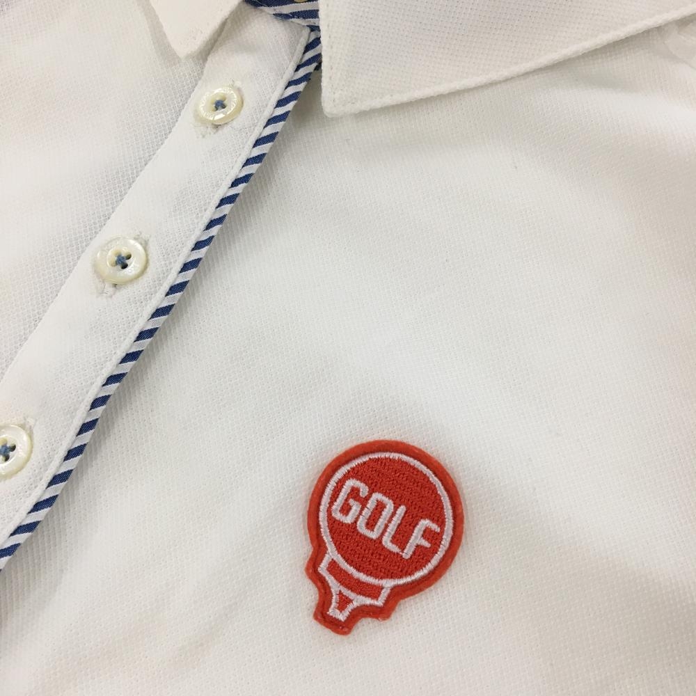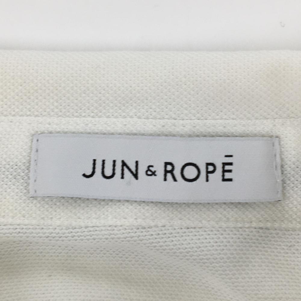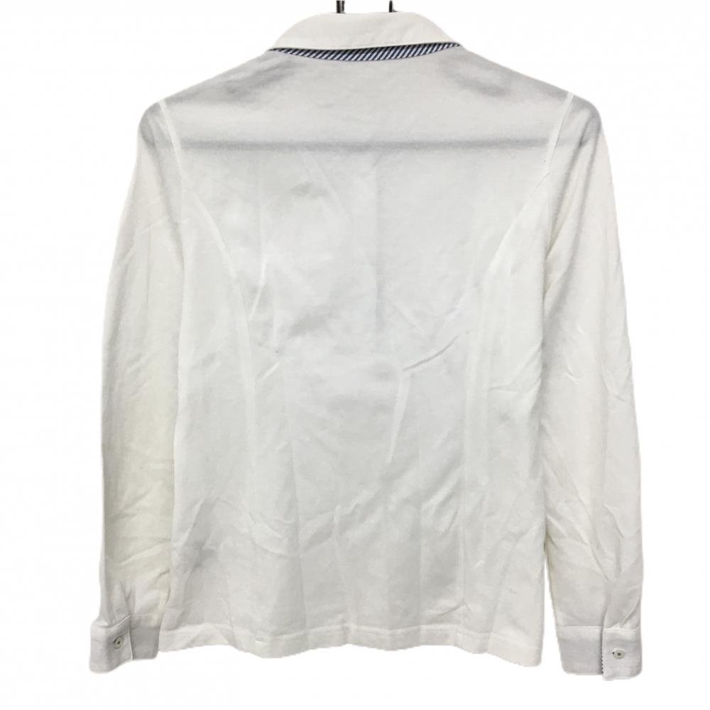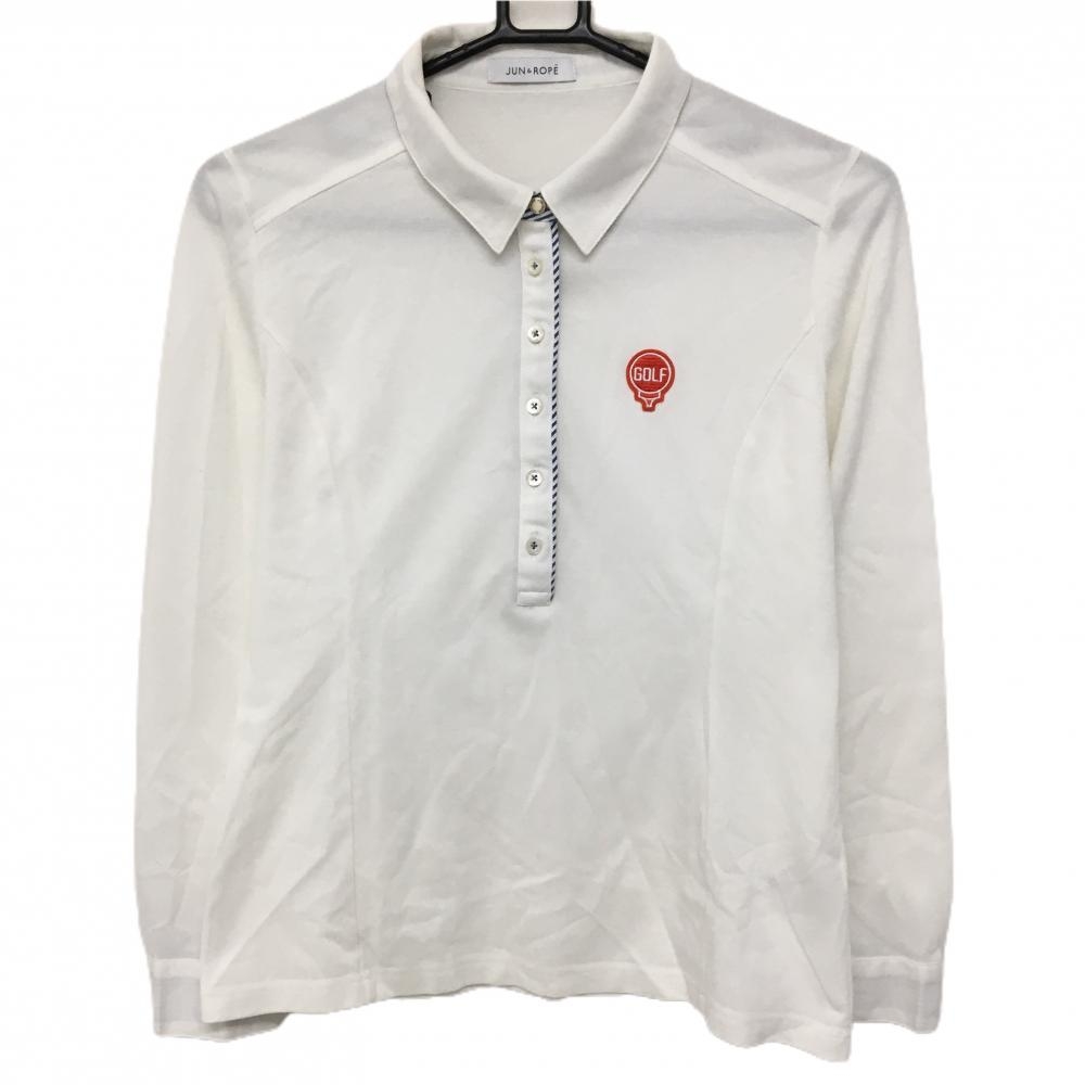 【美品】ジュンアンドロペ 長袖ポロシャツ 白 刺しゅうワッペン 襟裏ストライプ レディース L ゴルフウェア JUN&ROPE