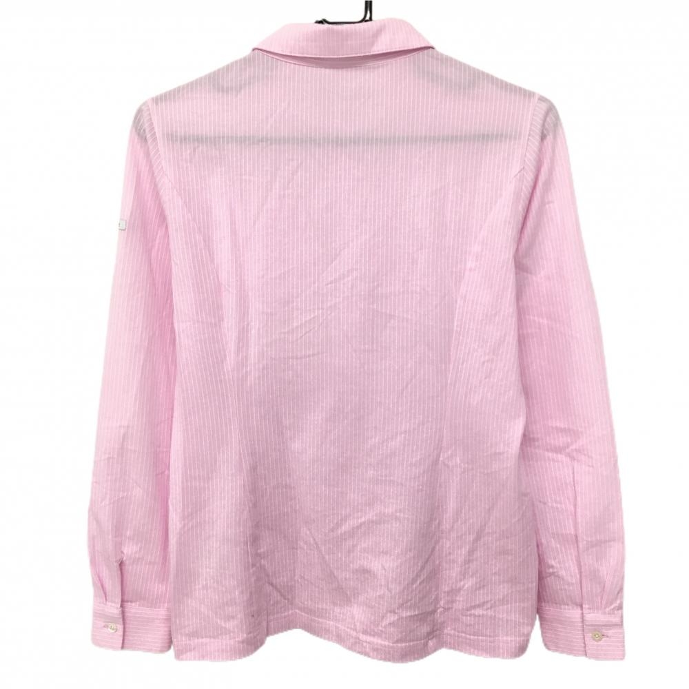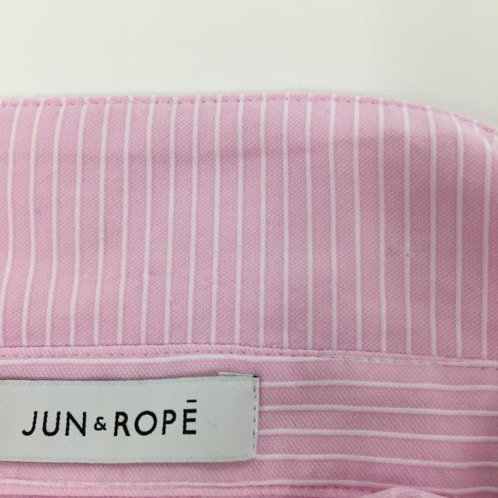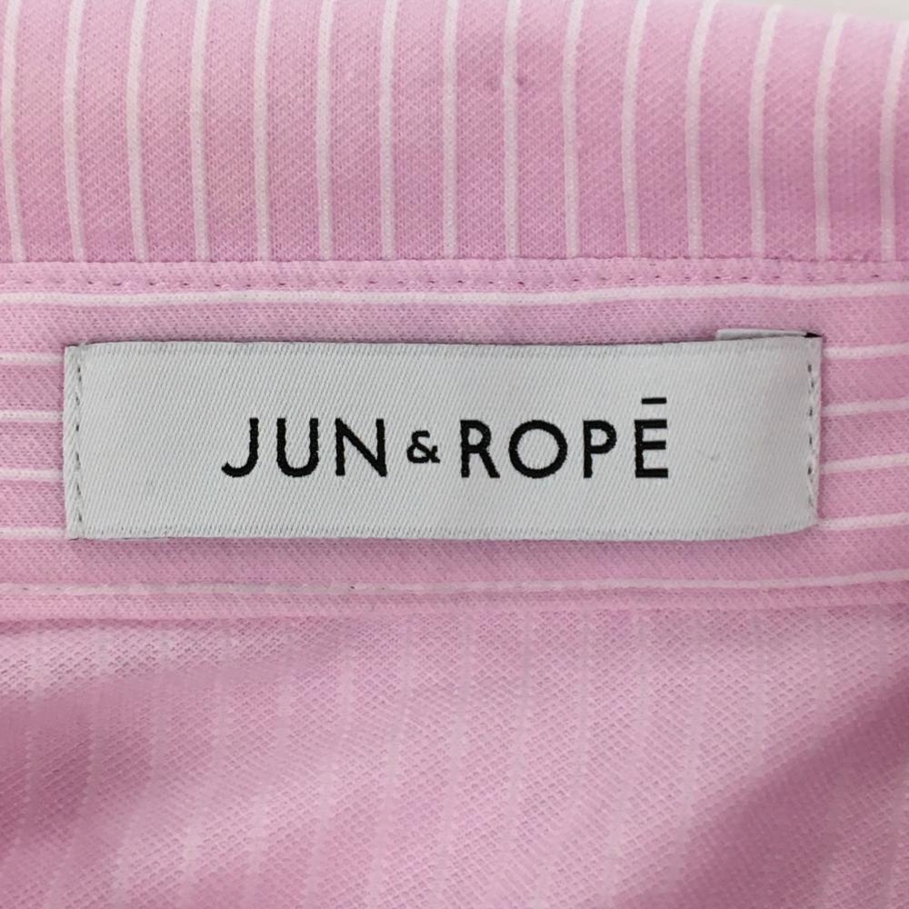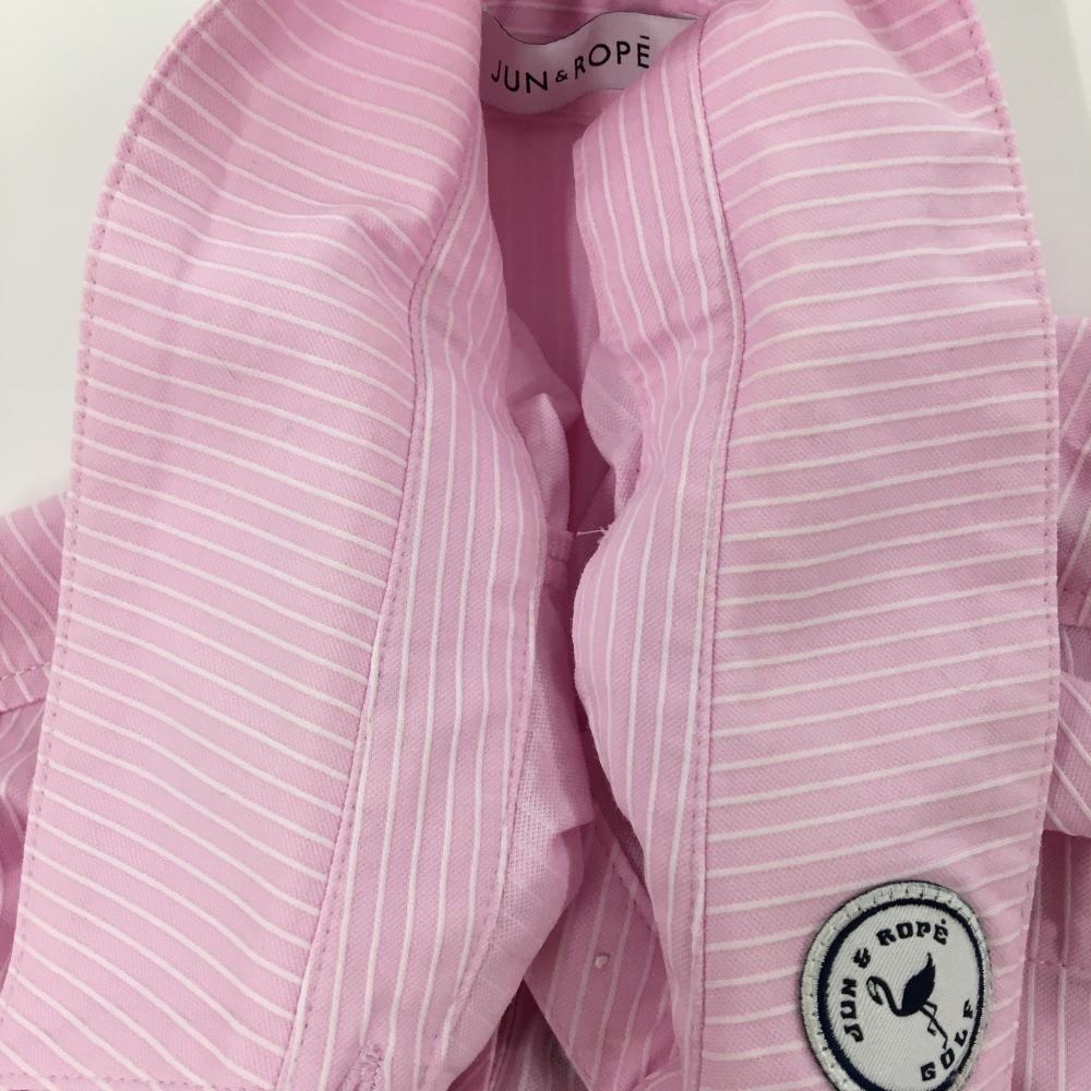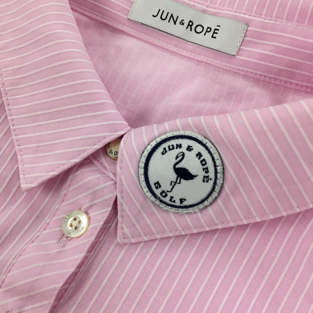 【美品】ジュンアンドロペ 長袖ポロシャツ ピンク×白 ストライプ ワッペン レディース L ゴルフウェア JUN&ROPE