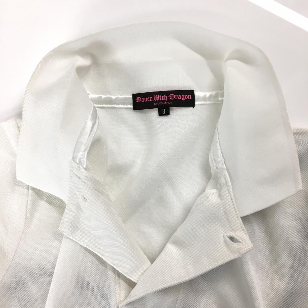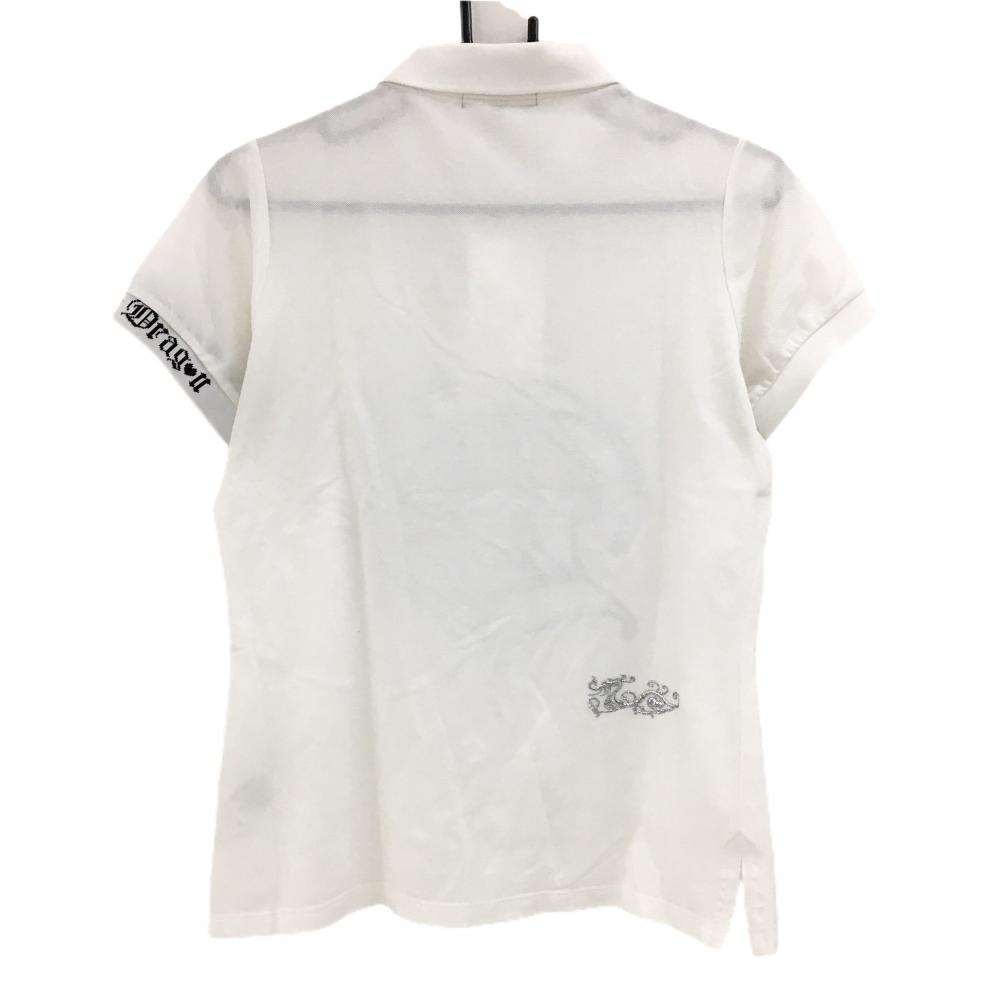 ダンスウィズドラゴン 半袖ポロシャツ 白×黒×レッド 一部ペイズリー レディース 3(L) ゴルフウェア Dance With Dragon