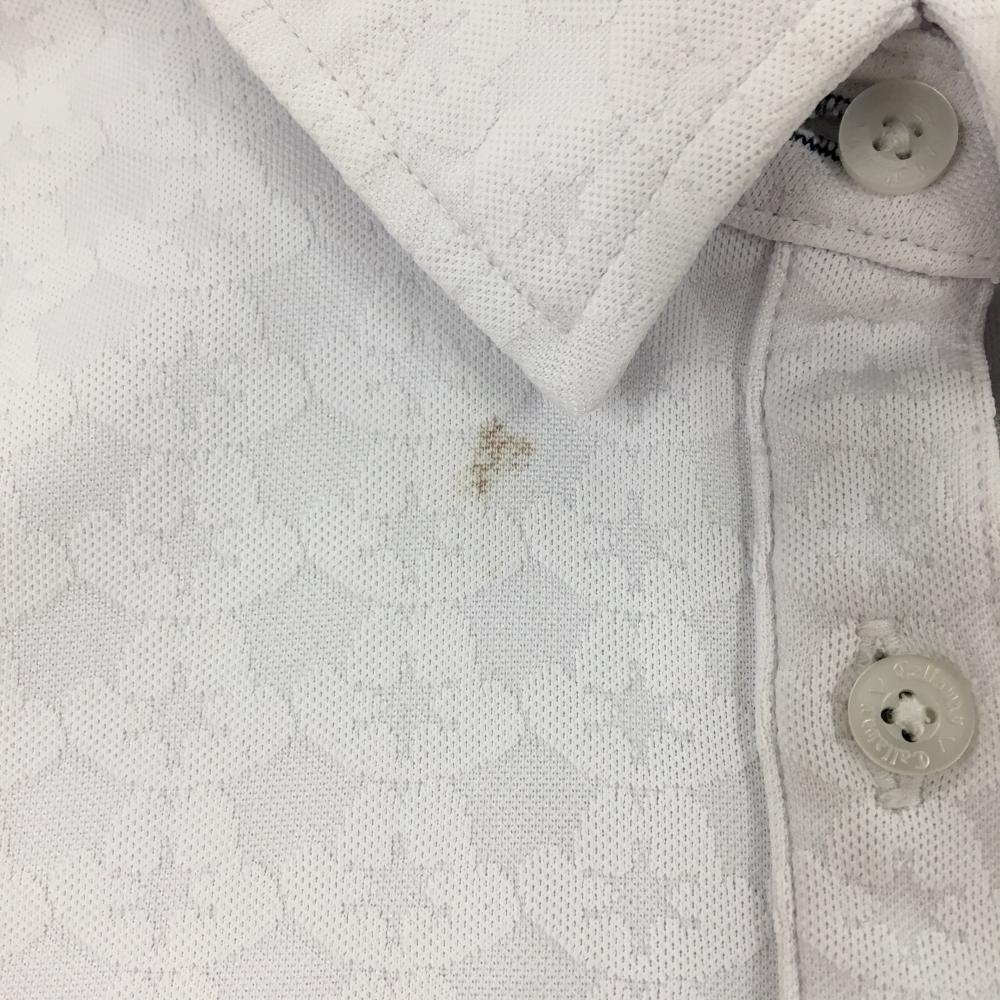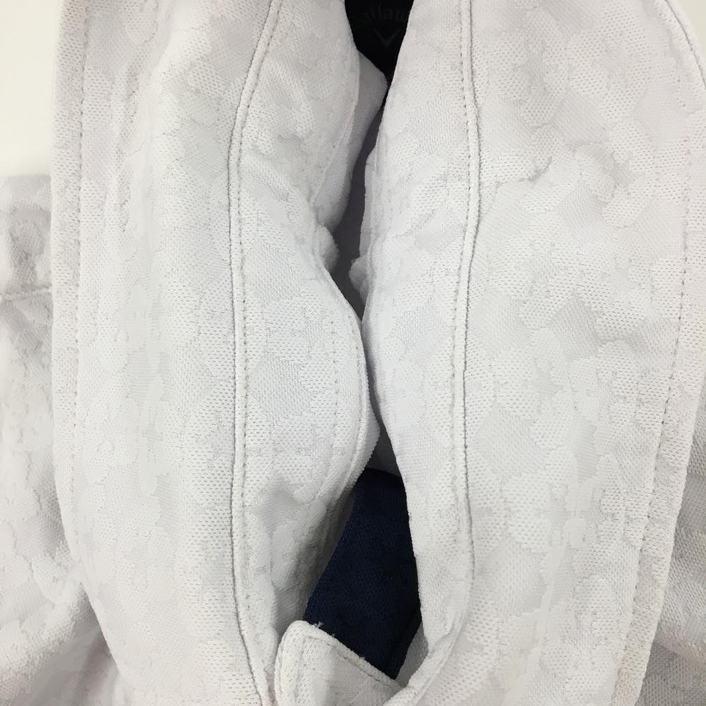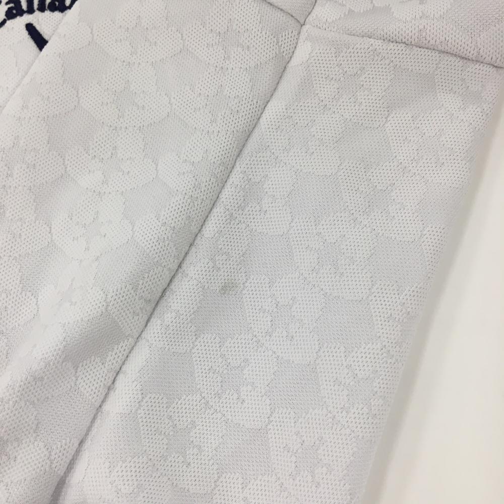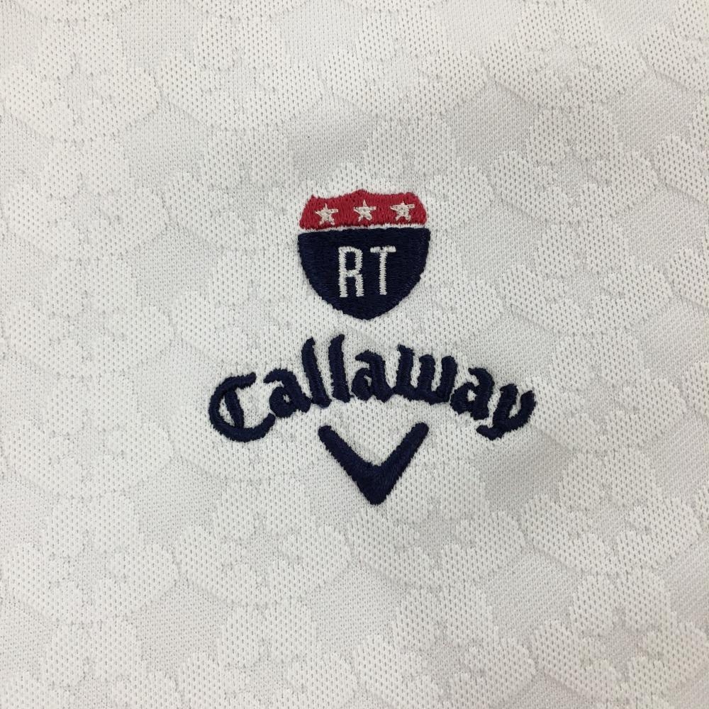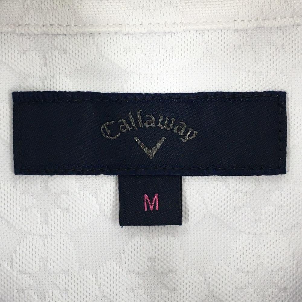 キャロウェイ 半袖ポロシャツ 白×ネイビー 花地模様 ロゴ刺しゅう レディース M ゴルフウェア Callaway