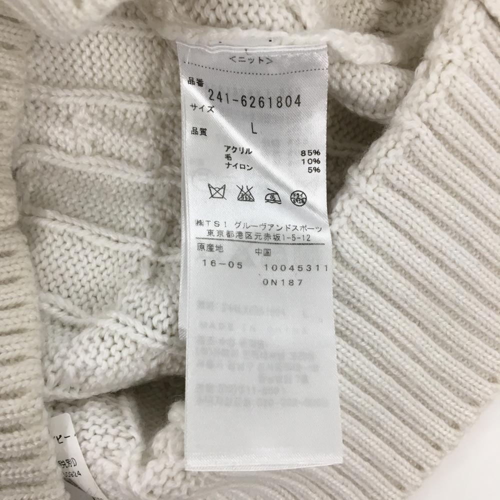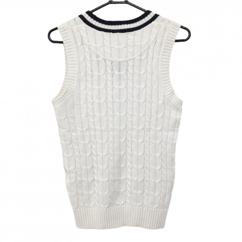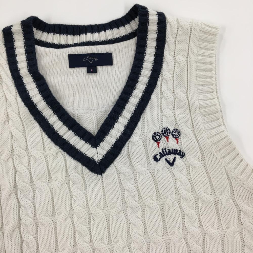 【美品】キャロウェイ ニットベスト 白×ネイビー ケーブル編み ウール混 Vネック レディース L ゴルフウェア Callaway