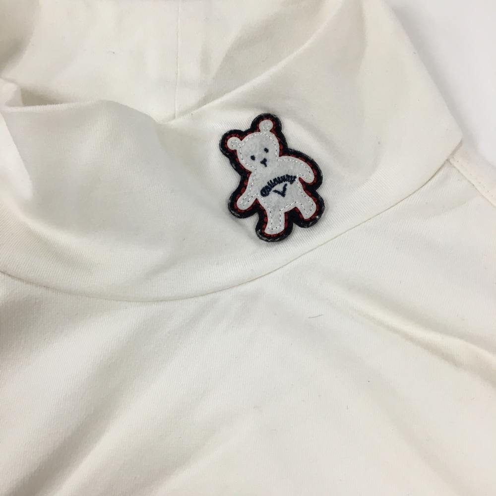 キャロウェイ 長袖ハイネックシャツ 白×ブルー クマ柄 ベアワッペン レディース M ゴルフウェア Callaway