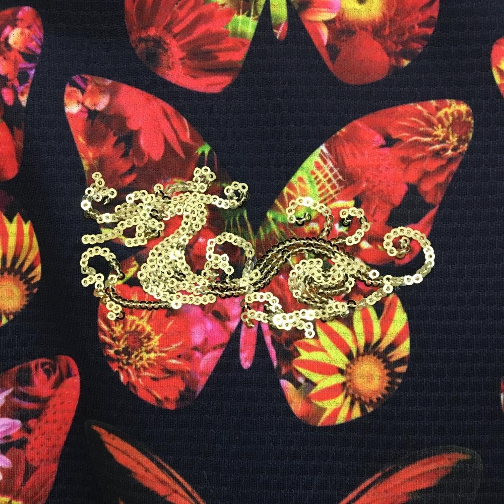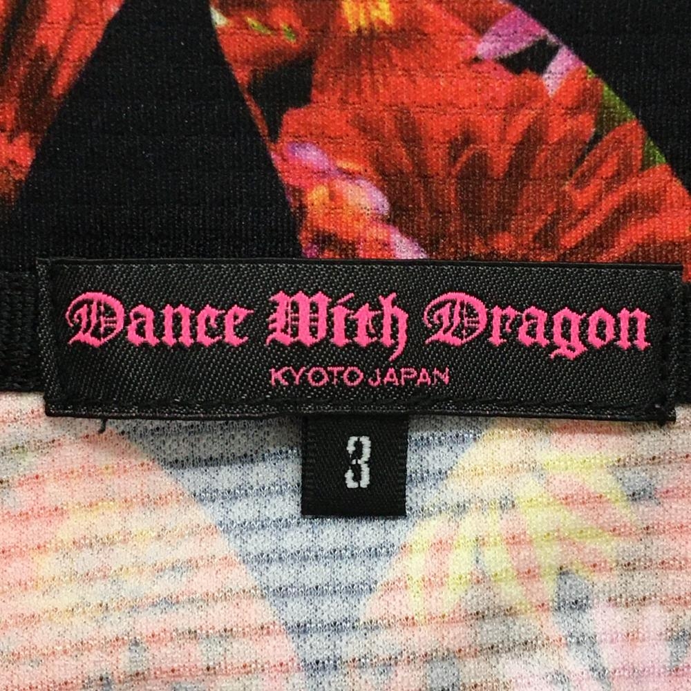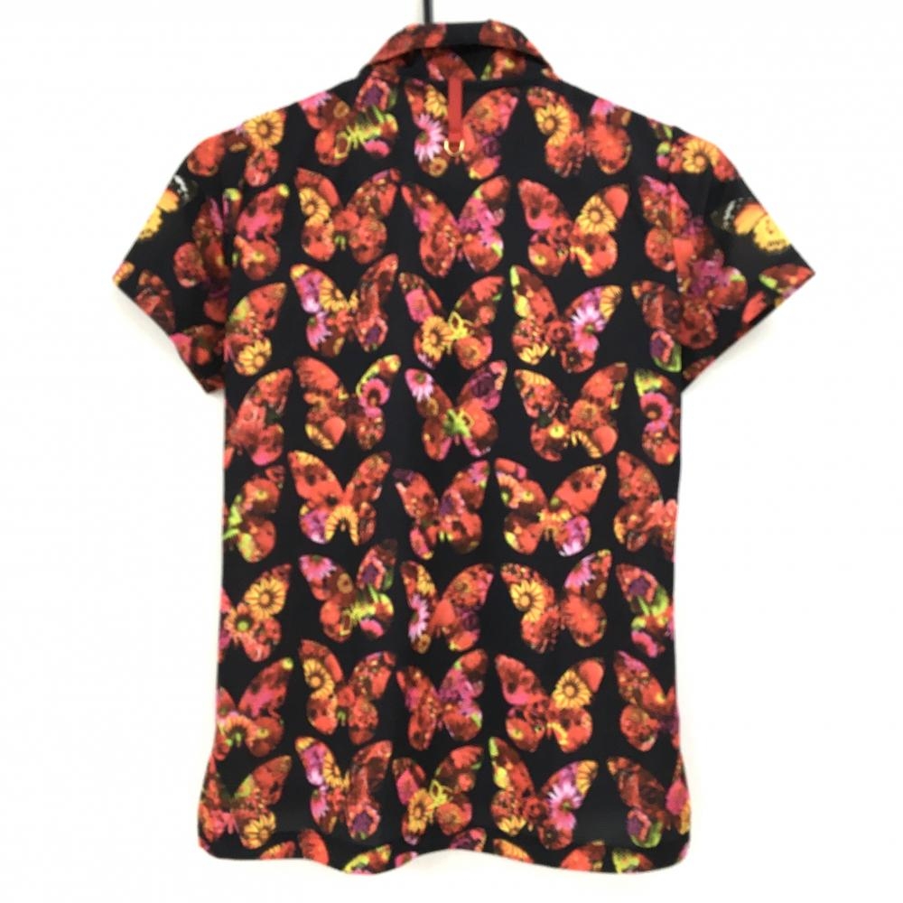 【超美品】ダンスウィズドラゴン 半袖ポロシャツ 黒×レッド 蝶々柄 花柄 レディース 3(L) ゴルフウェア Dance With Dragon