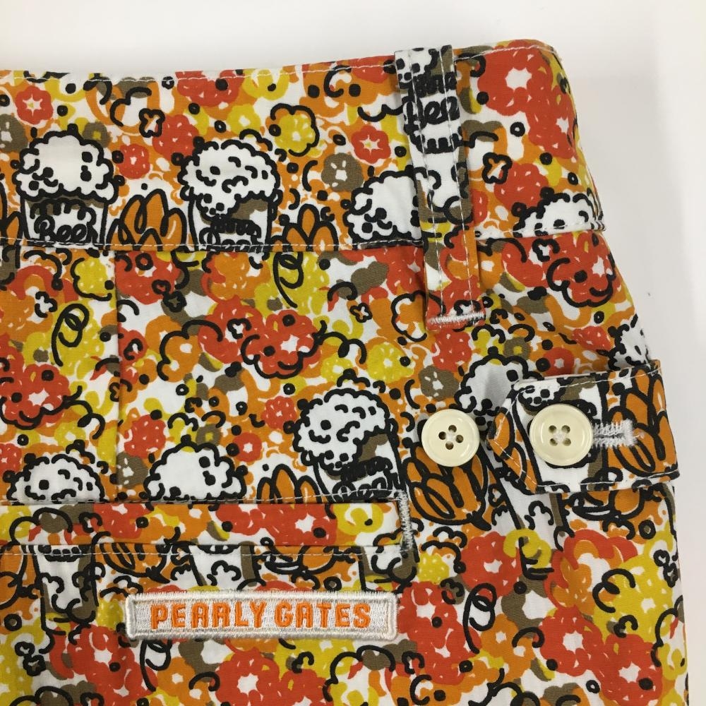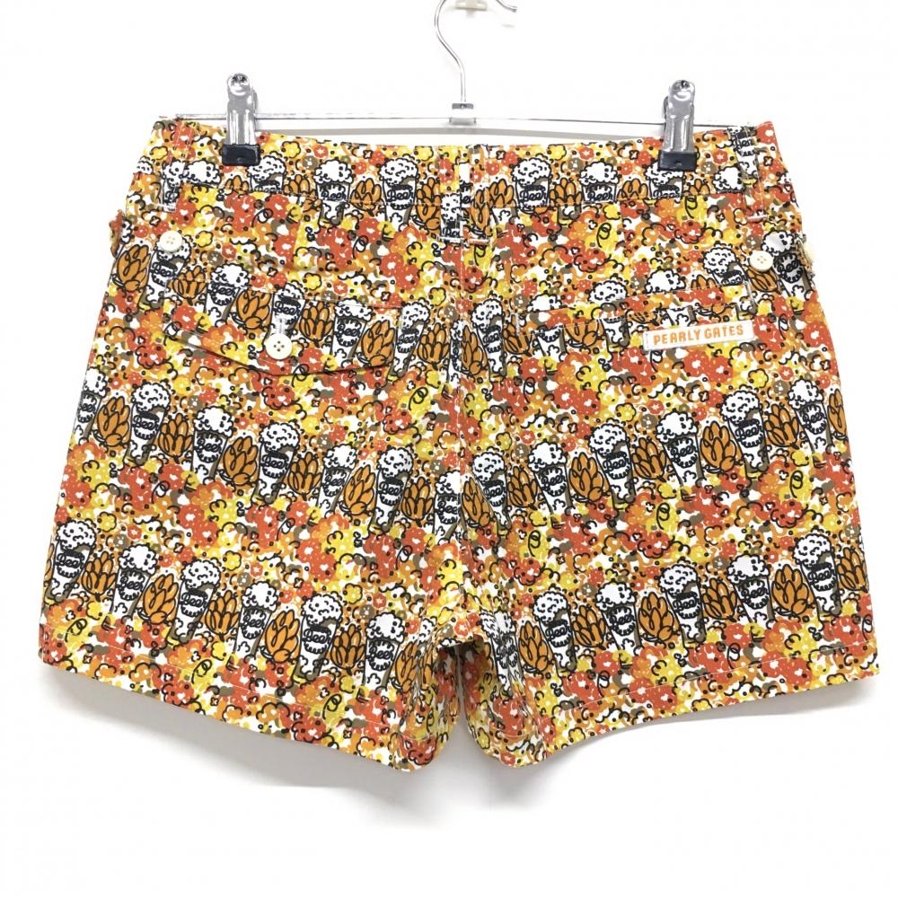 【超美品】パーリーゲイツ ショートパンツ オレンジ×白 総柄 ストレッチ レディース 1(M) ゴルフウェア PEARLY GATES