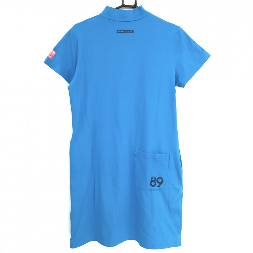 【美品】パーリーゲイツ 半袖ハイネックワンピース ブルー ニコちゃん スマイル レディース 2(L) ゴルフウェア PEARLY GATES