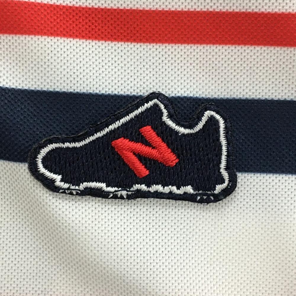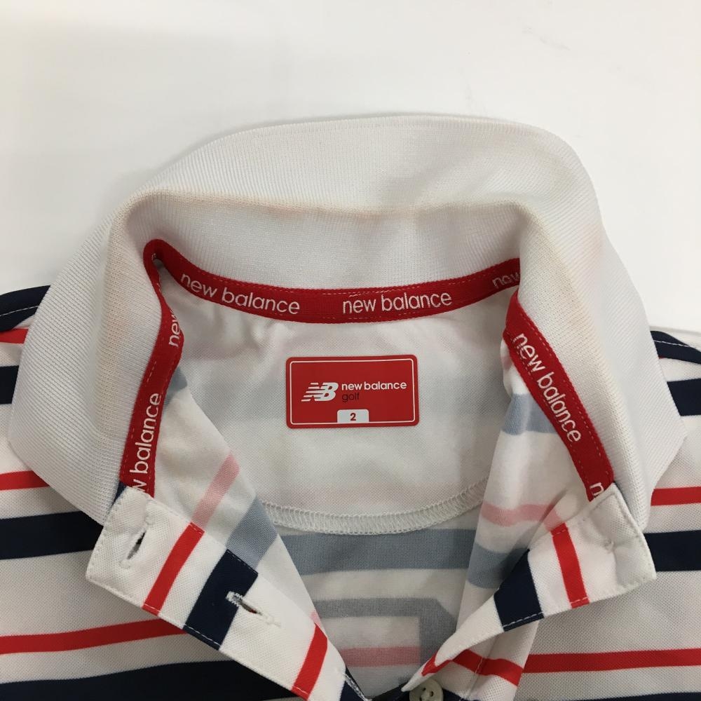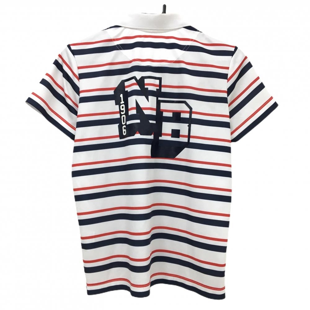 ニューバランスゴルフ 半袖ポロシャツ 白×ネイビー×レッド ボーダー レディース 2(L) ゴルフウェア New Balance