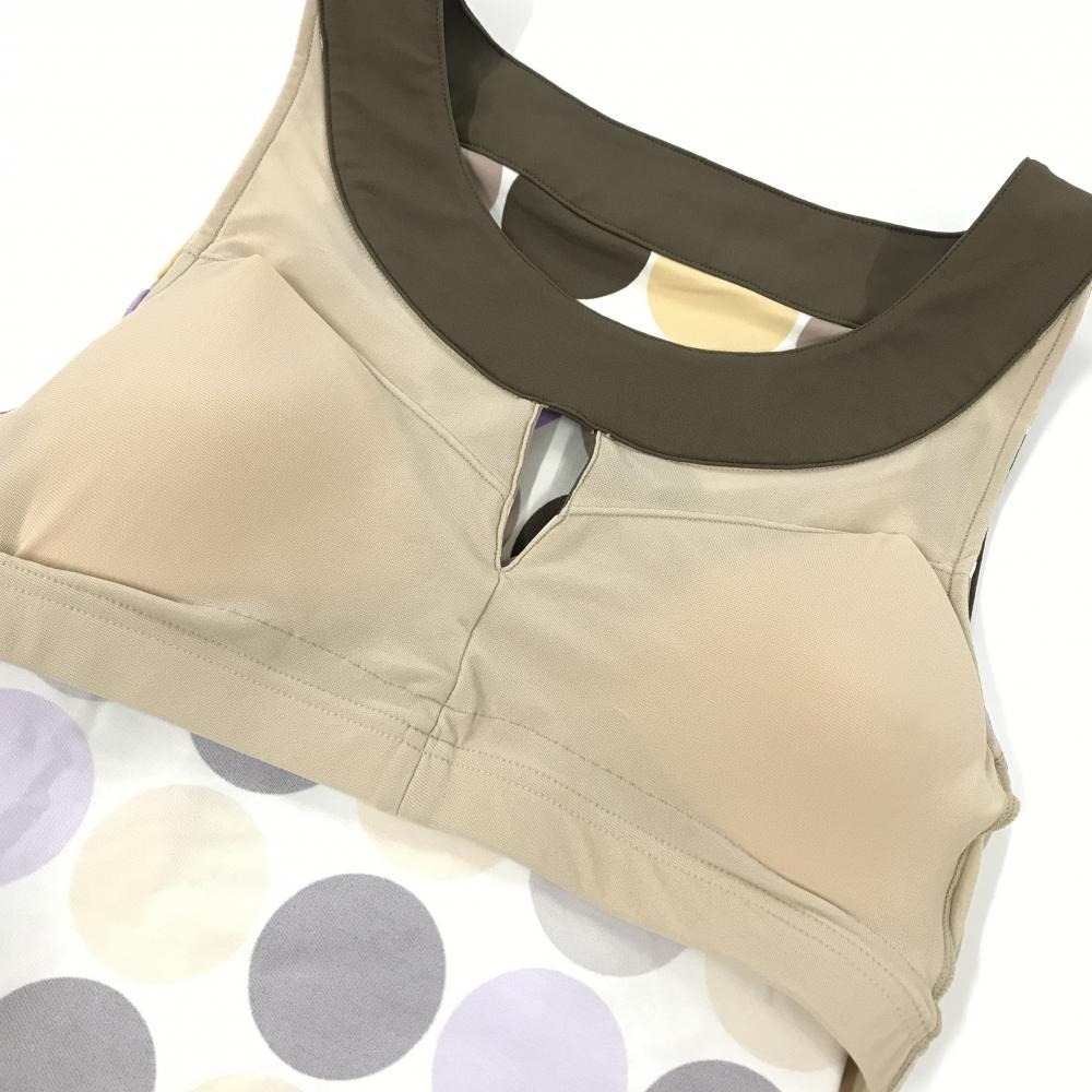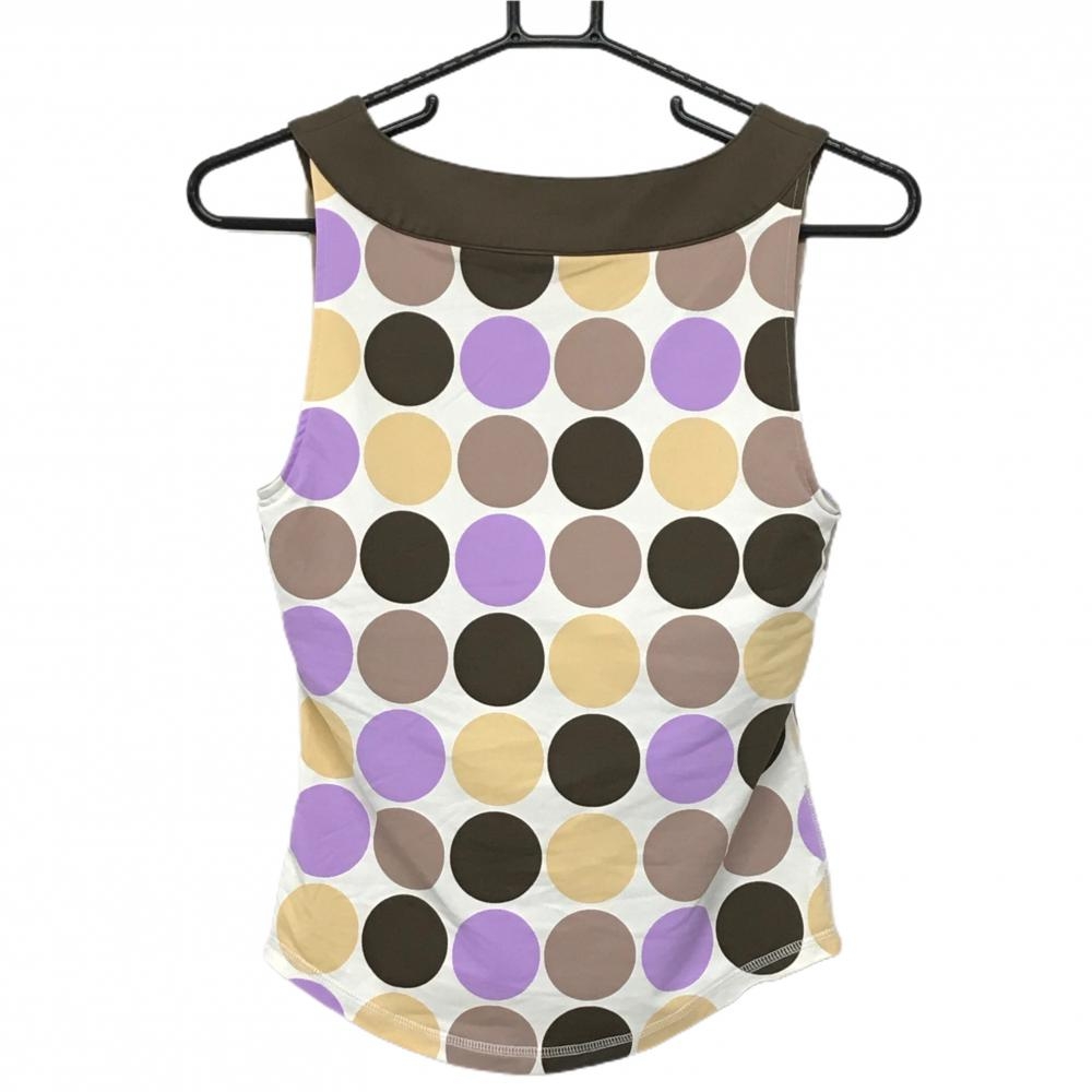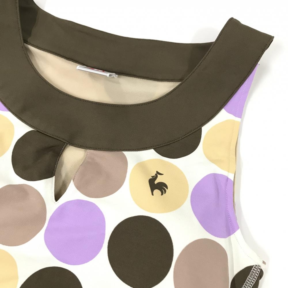 【超美品】ルコック ノースリーブストレッチシャツ アイボリー×ブラウン マルチカラー 水玉柄 レディース M ゴルフウェア le coq sportif