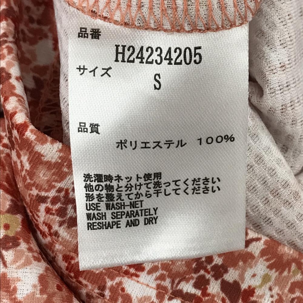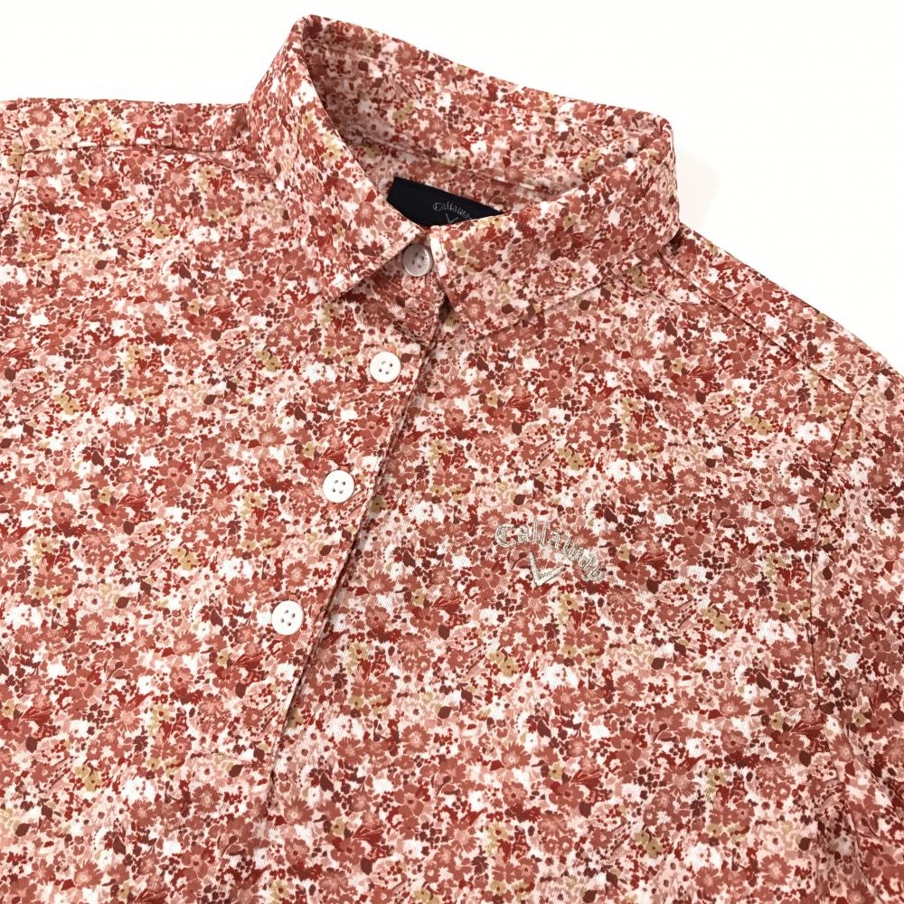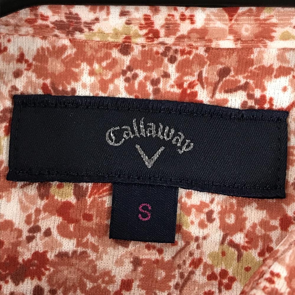 【超美品】キャロウェイ 半袖ポロシャツ レッド系×白 花柄 ロゴ刺しゅう レディース S ゴルフウェア Callaway
