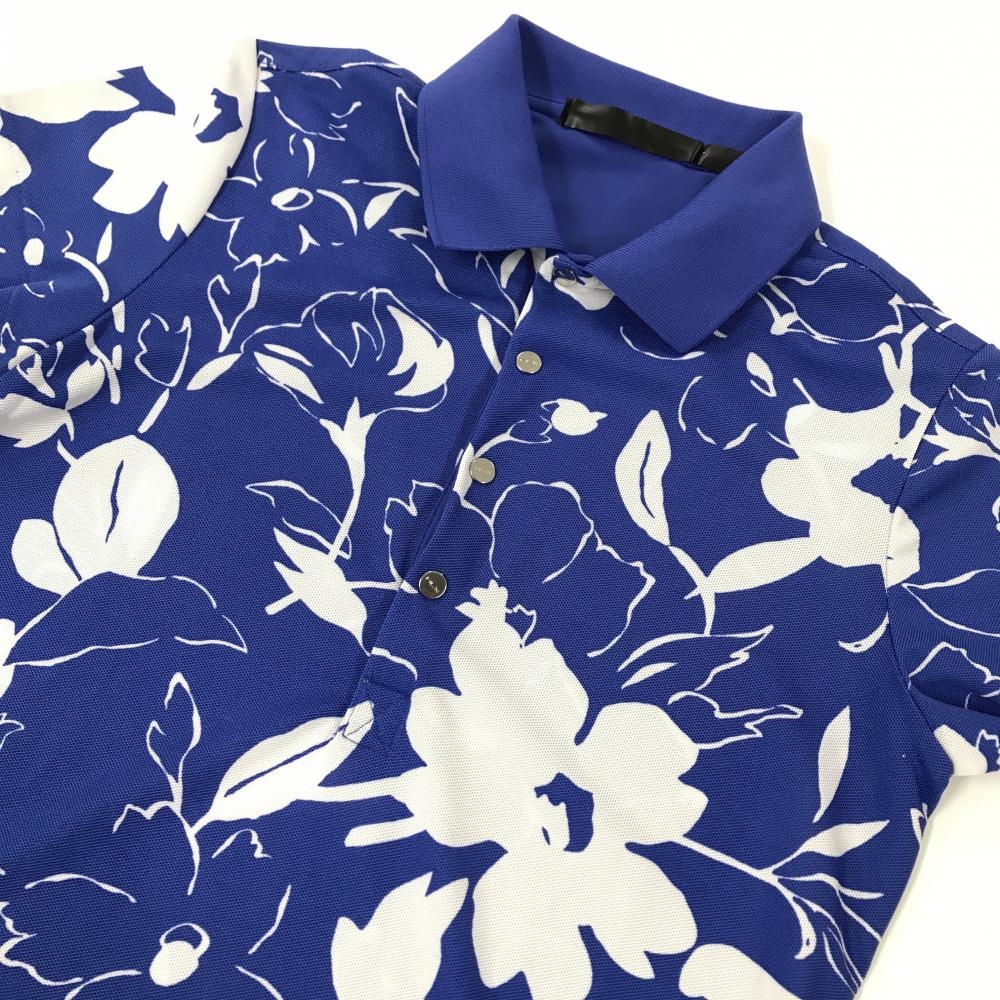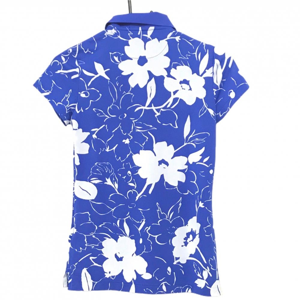 RLXラルフローレン 半袖ポロシャツ ブルー×白 花柄 スナップボタン レディース 表記なし ゴルフウェア Ralph Lauren