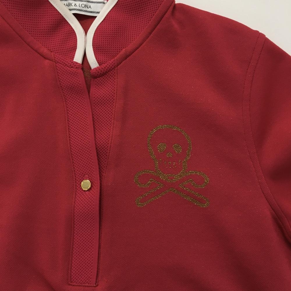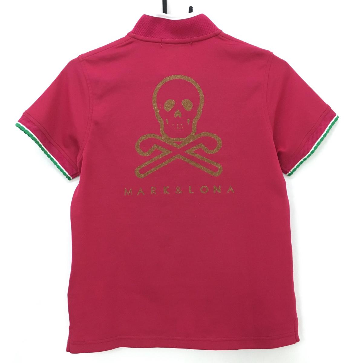 マークアンドロナ 半袖スキッパーシャツ ピンク×ゴールド 背面スカル レディース 40(L) ゴルフウェア MARK&LONA