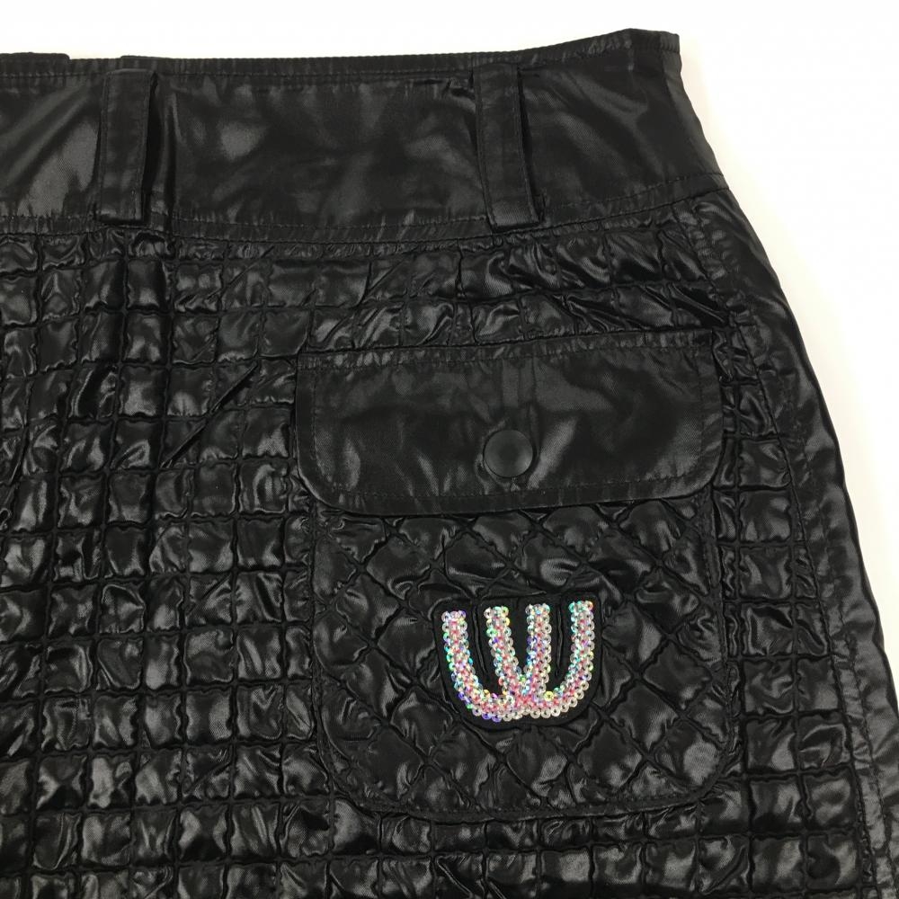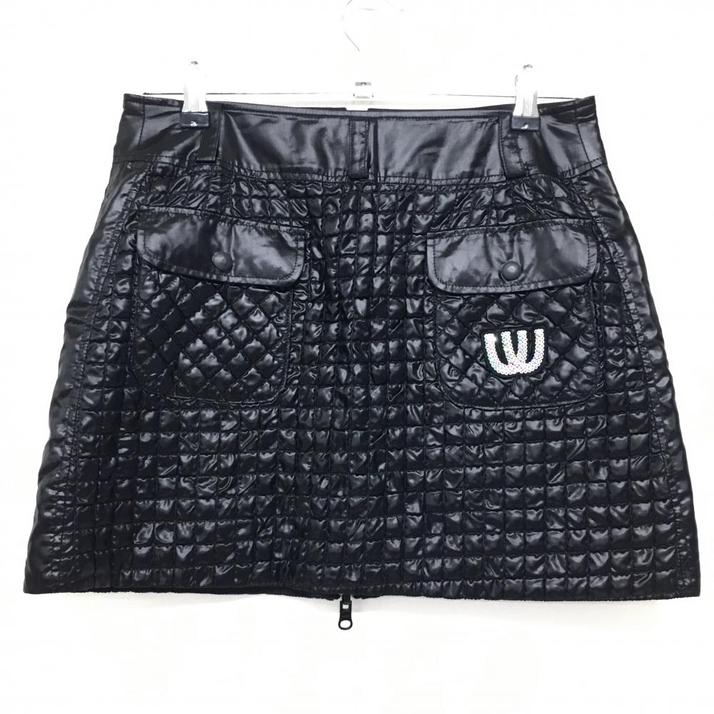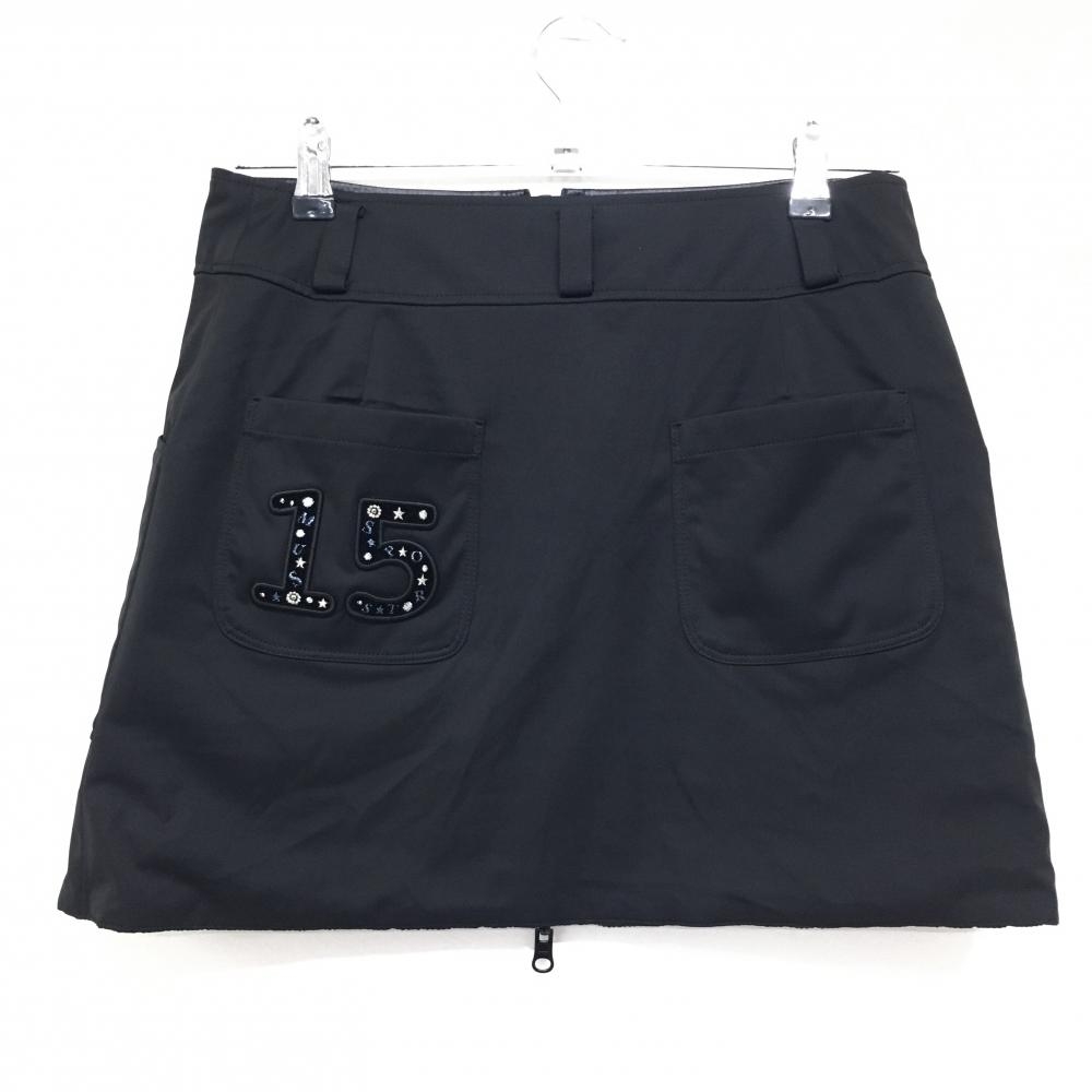 【美品】MUスポーツ リバーシブルスカート 黒 表凹凸生地 フロントジップ レディース 0(S) ゴルフウェア M・U SPORTS