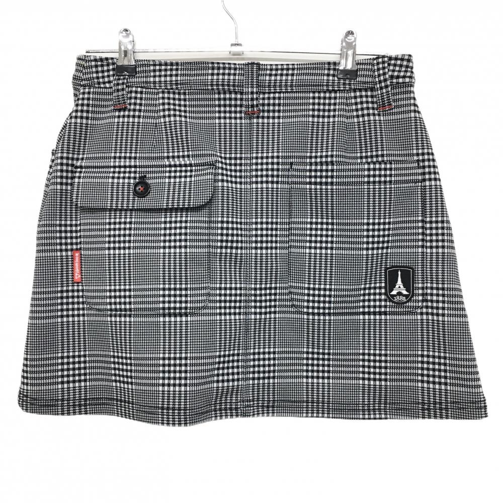 【超美品】ルコックゴルフ スカート ライトグレー×黒 グレンチェック フロントボタン レディース 11(L) ゴルフウェア le coq sportif