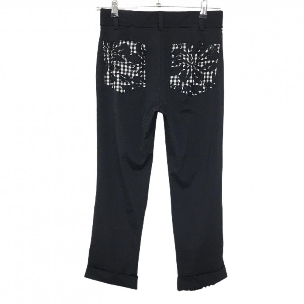 【超美品】ムニタルプ 半端丈レギンスパンツ 黒×白 前面チェック 花柄 ヒールクリーク レディース 40(M) ゴルフウェア Heal Creek