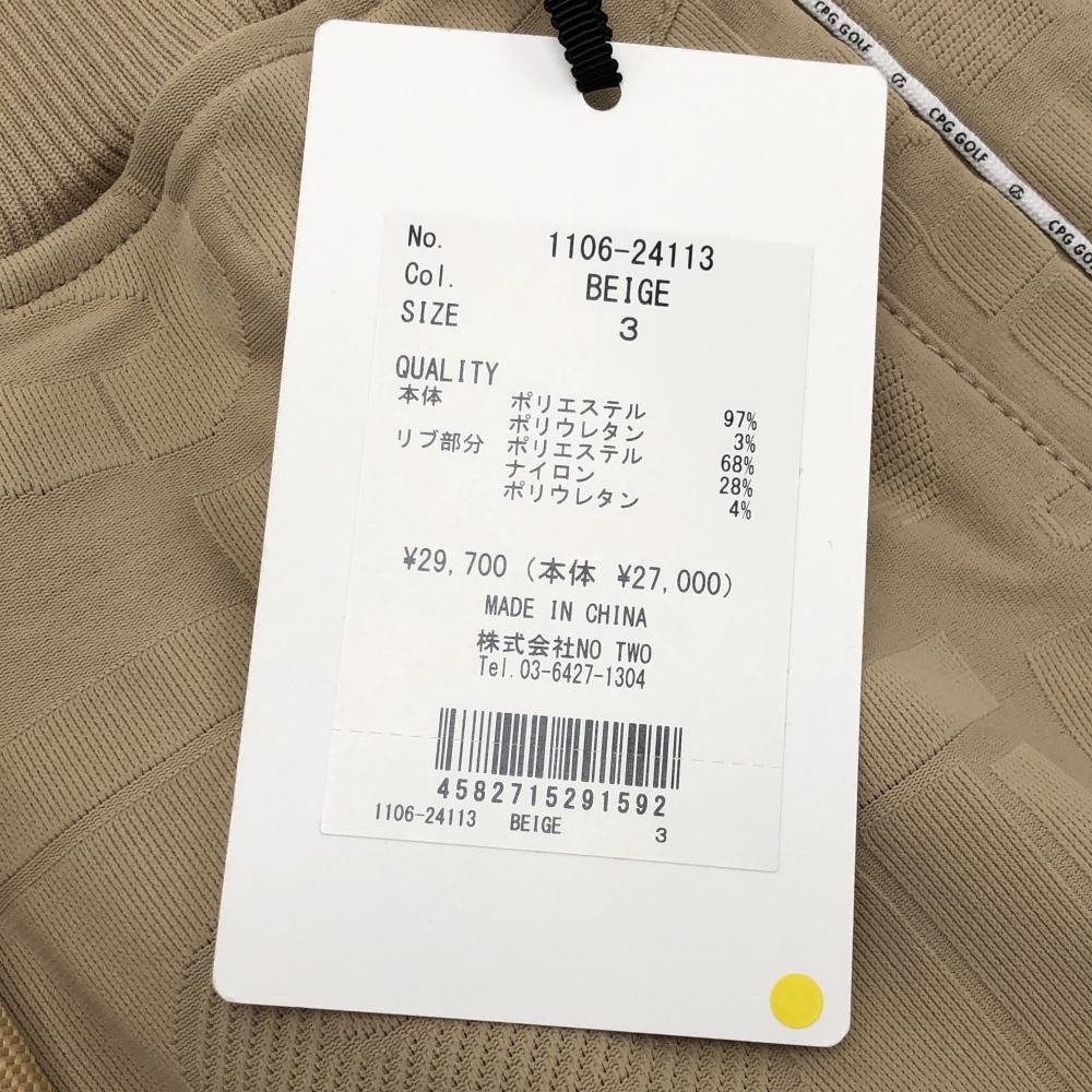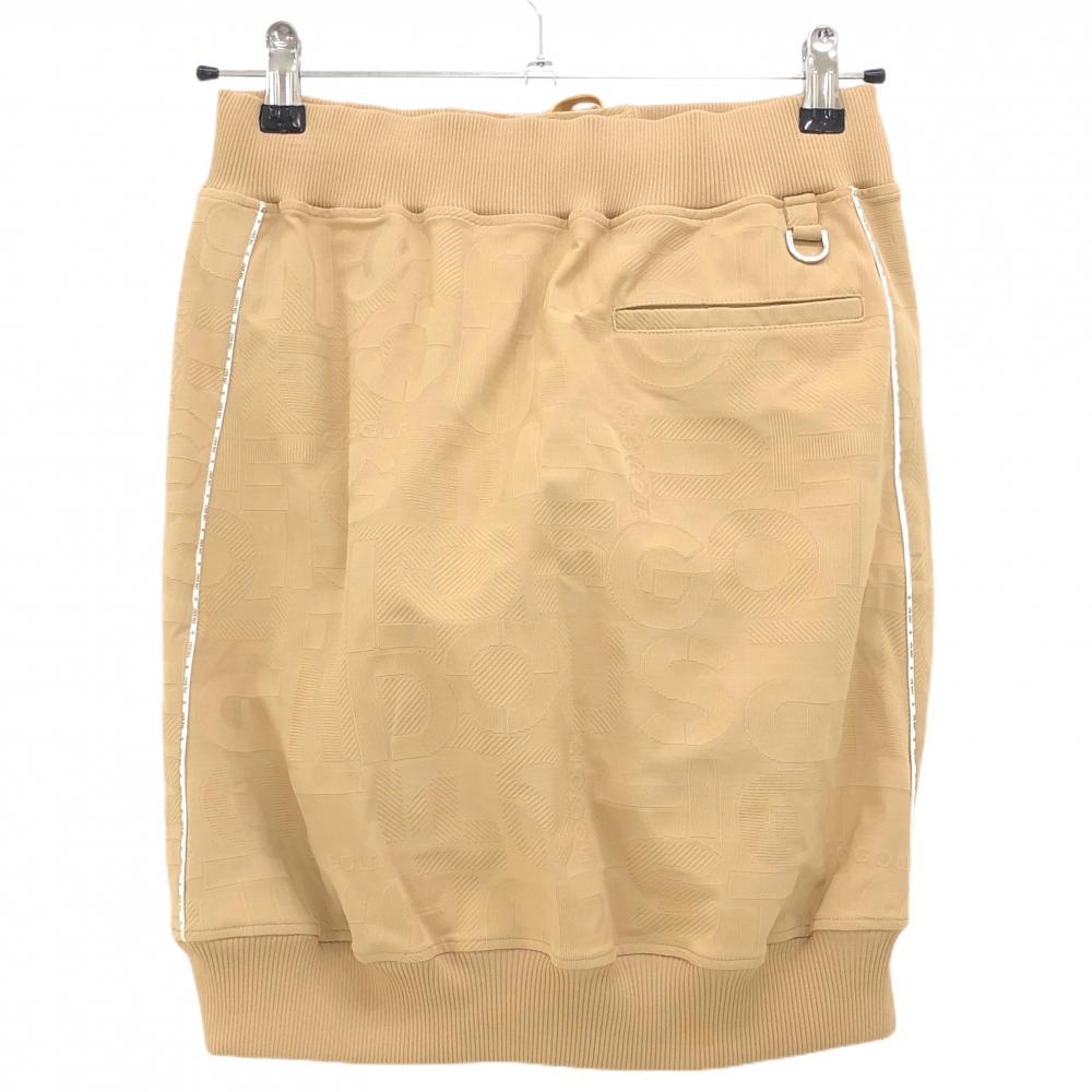 【新品】CPG スカート ベージュ×白 英字地模様 サイドロゴライン ウエストゴム 調節紐 レディース 3(L) ゴルフウェア 2024年モデル CPG